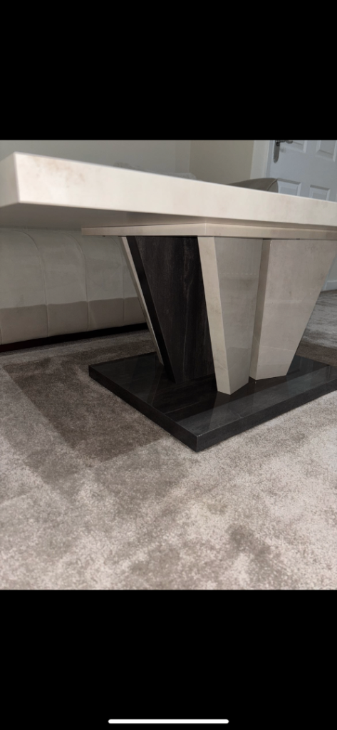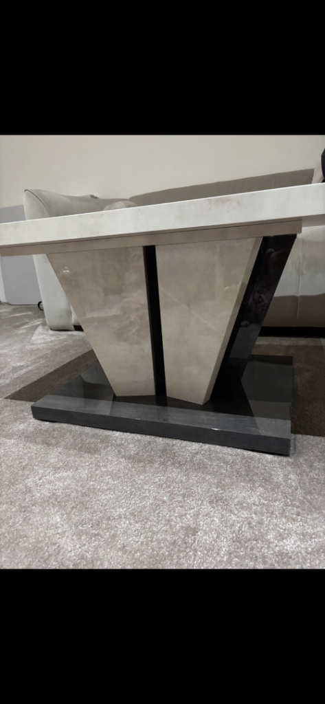 Elevate your living room with this brand new stunning coffee table. Featuring a sophisticated marble-effect top with a blend of gold glitter and a bold, geometric pedestal base, it effortlessly blends modern design with timeless elegance. Perfect for adding a touch of luxury to any home. Message me if interested!
