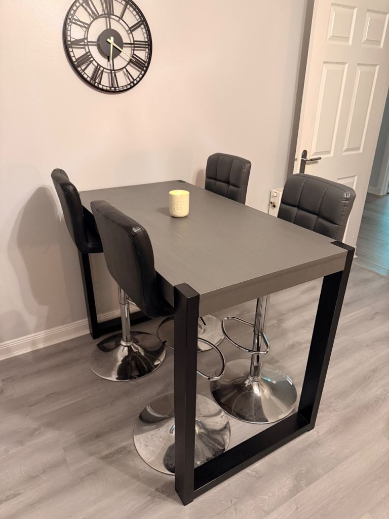 4 Stools not Included in sale due to them having scratches and defects from previous owners, however, still functional and available at no extra cost should you require them.
