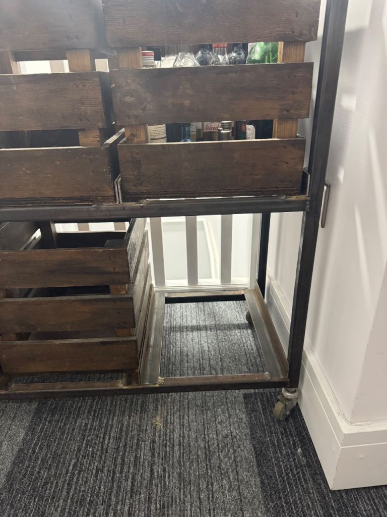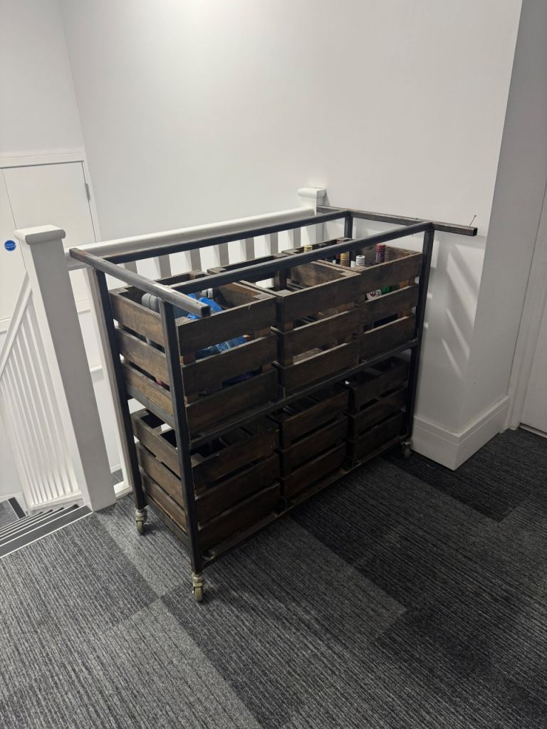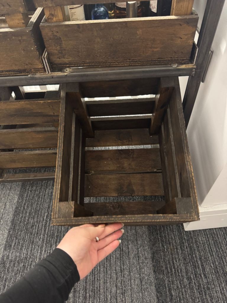 This is an amazing table with built in storage, the top is solid wood and has crate storage underneath. It’s a one of a kind that was hand made.