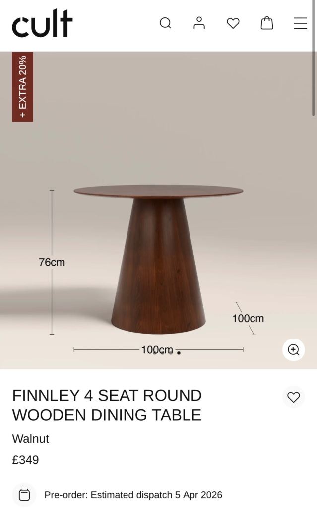 Cult Furniture Finnely 4 seat round dining room table in Walnut for sale