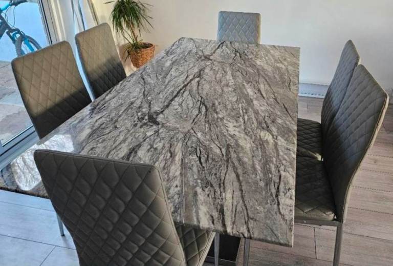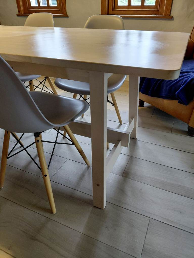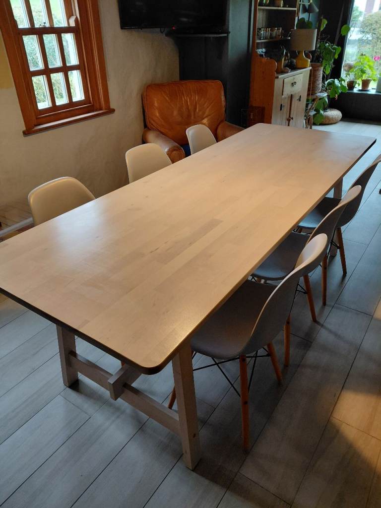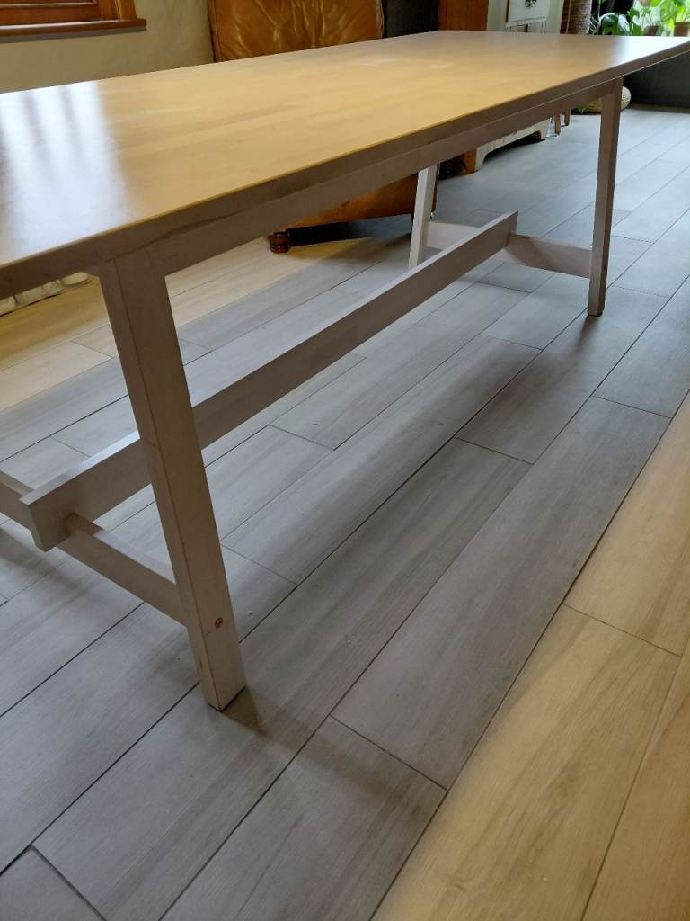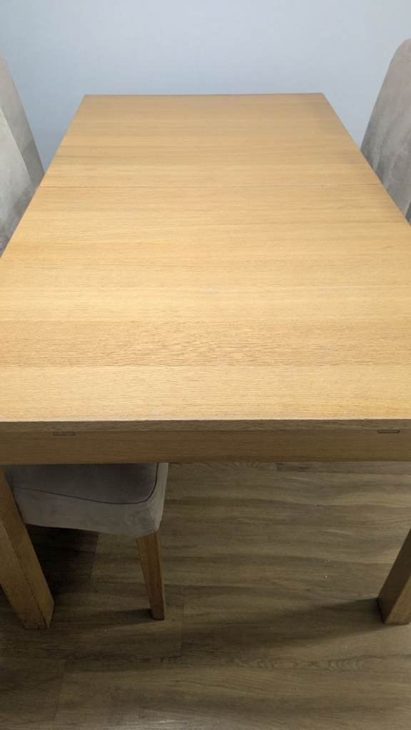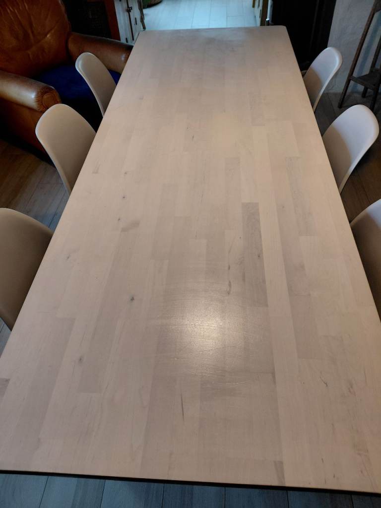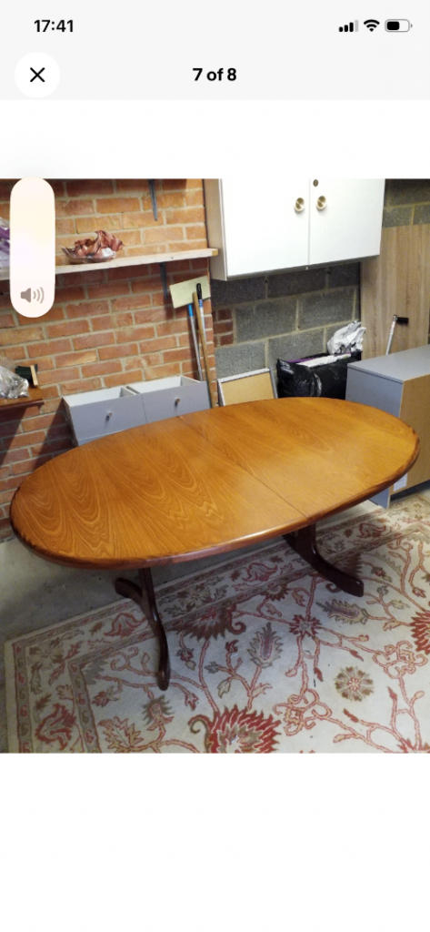 A really good solid table this that will easily sit 6 people with 8 at a push. Nothing is structurally wrong with this piece, it stand level, solid and in very good condition. A snip at this price.