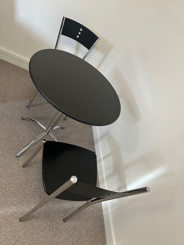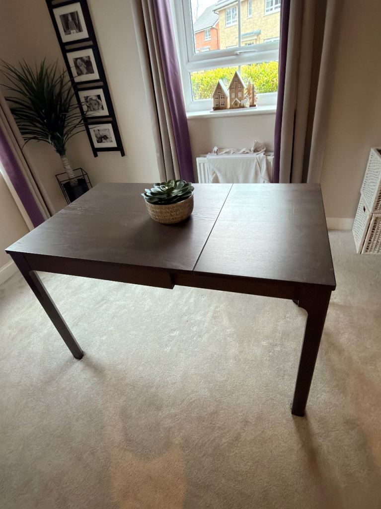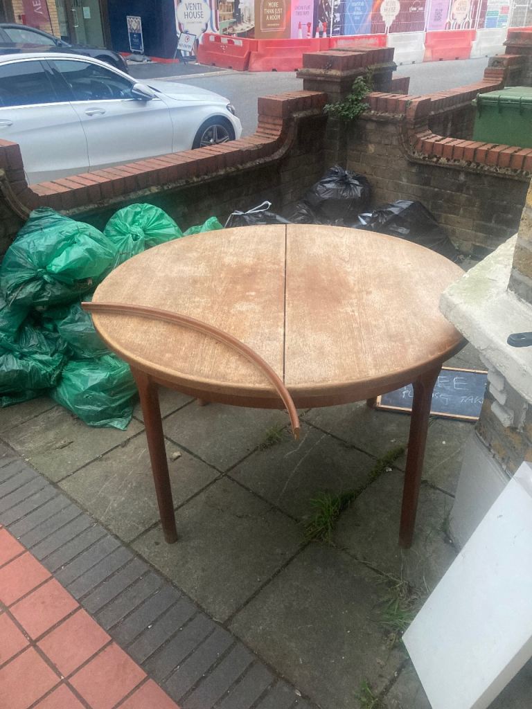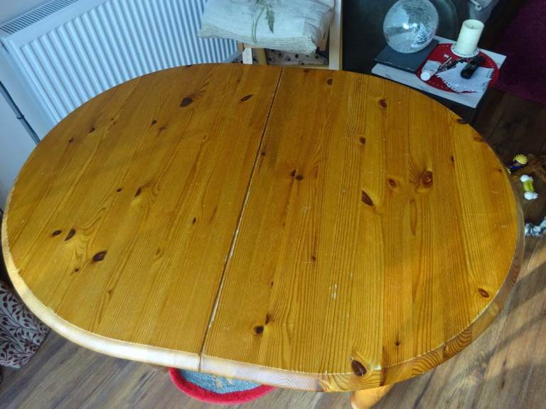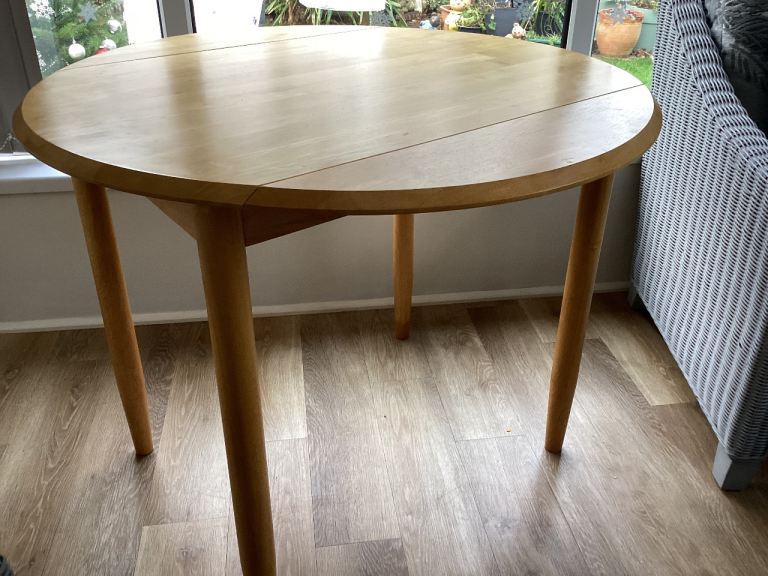 Round dining table. 92cm round. 66cm when the leafs are down. 74cm height