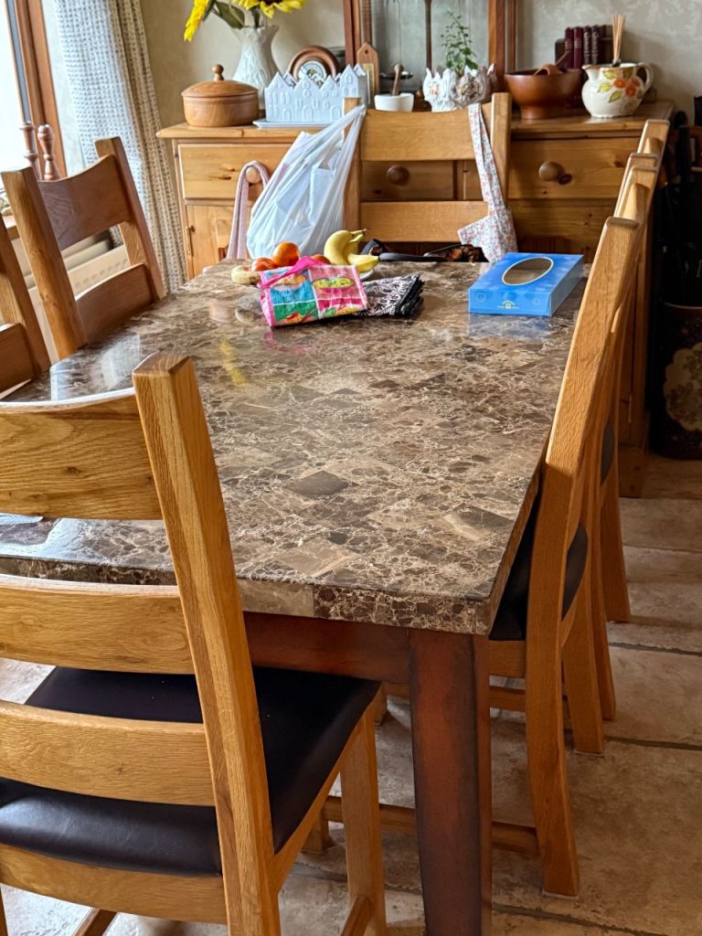 Dining Table in excellent condition no scratches or chips. Seats 6 people.