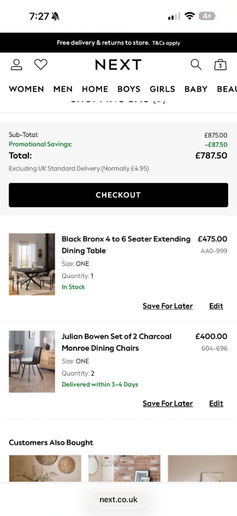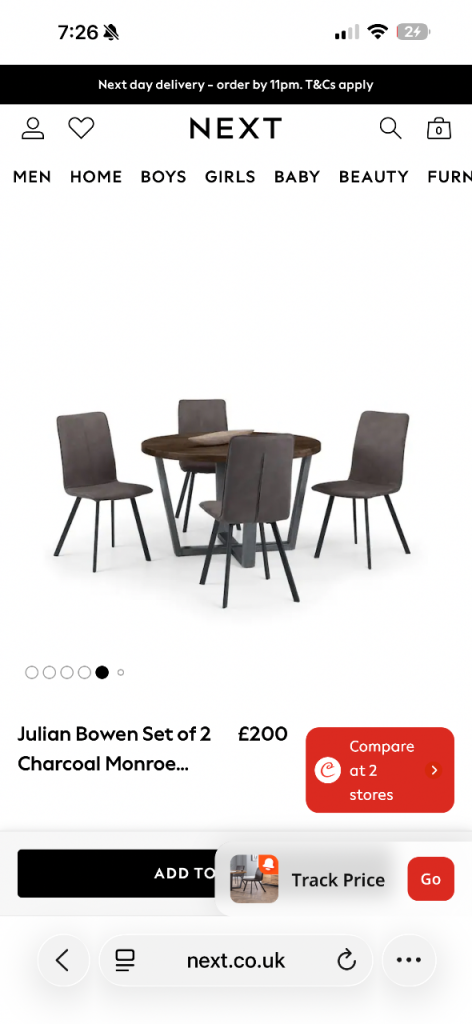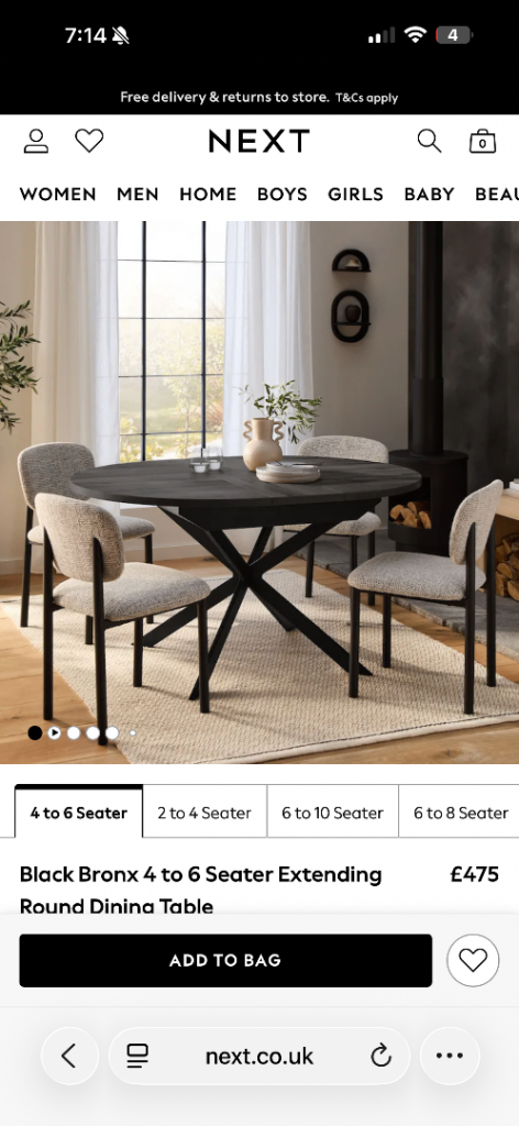 Includes 4 chairs also purchased from Next