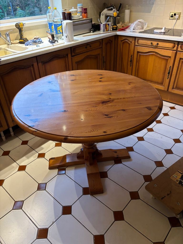 Comes as flat pack, legs are off the table and benches, should fit in car, or I can deliver if local to Huntly.