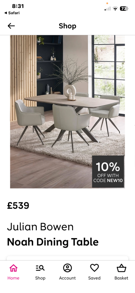 1 x dining table - W91cm x L161cm