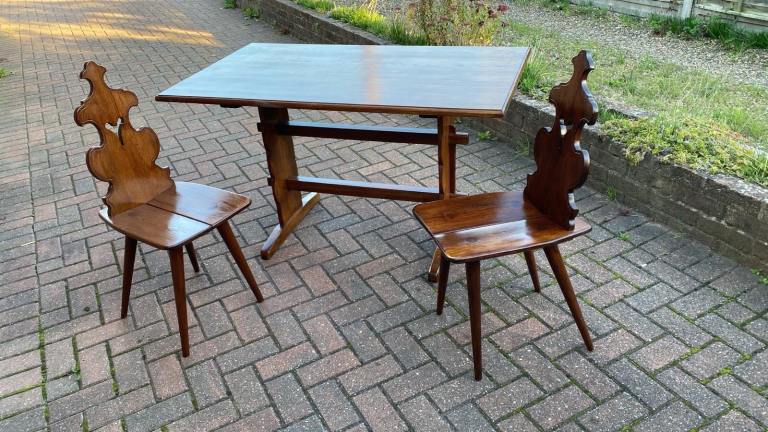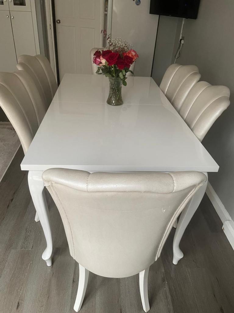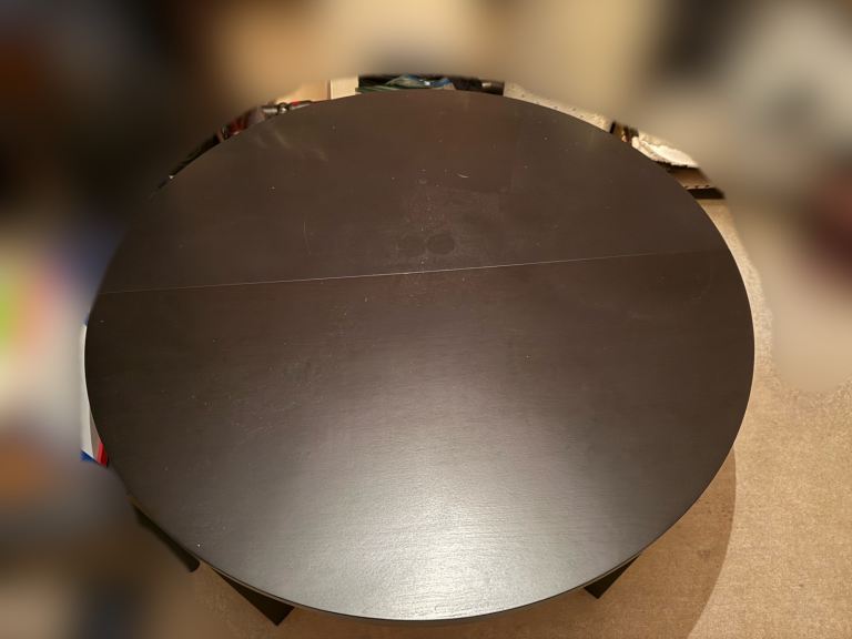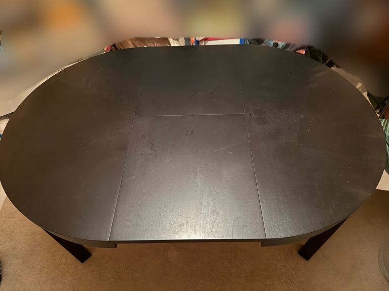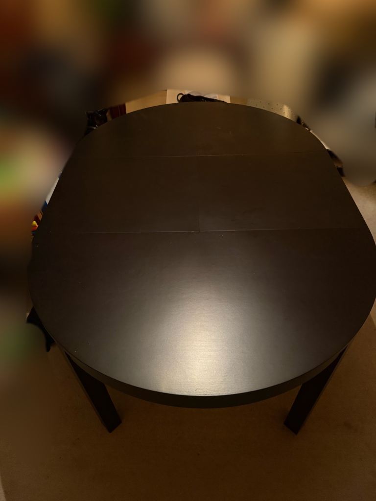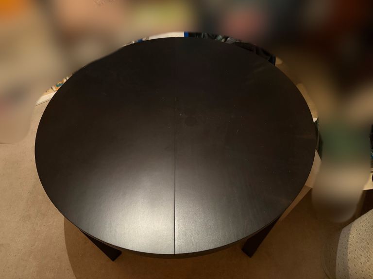Selling our IKEA BJURSTA round dining table. It seats 4 when closed and extends to comfortably seat 6. The extension leaf stores neatly inside the table, making it really handy for everyday use or extra guests.
