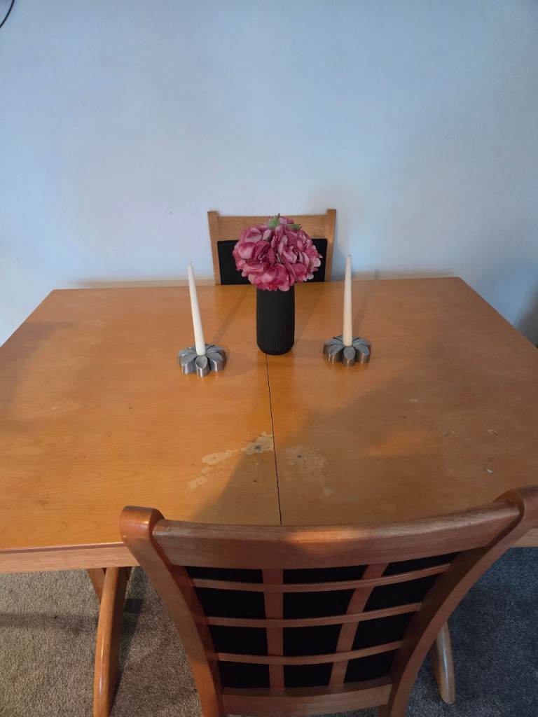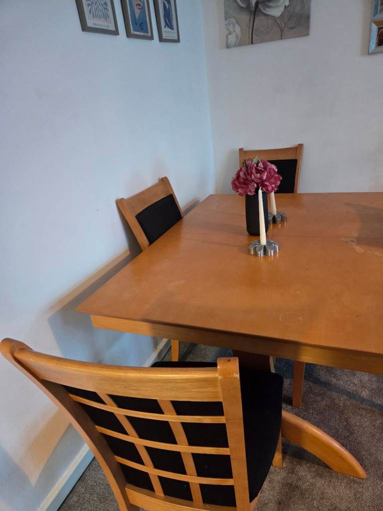 Extendable dining table and 4 chairs. Pm for questions. Mark's as visible in pictures. Otherwise good condition. Collection needed from perth city centre. Van needed and at least 2 people.