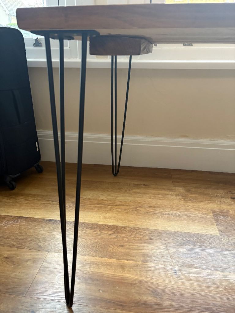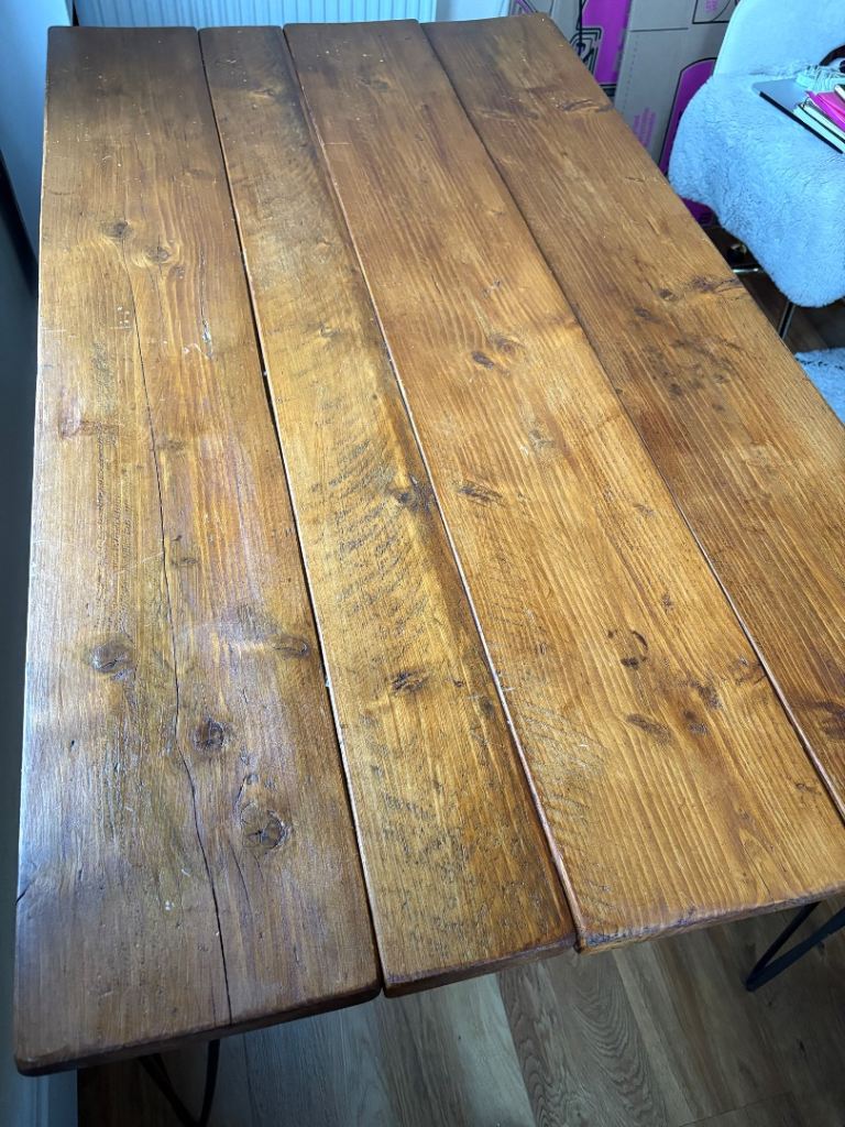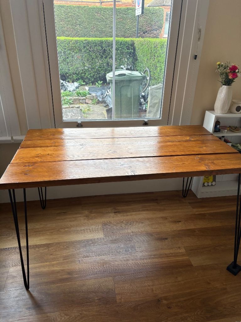 Reclaimed wood dining table for about 4-6 people with steel legs. 140x70 cm