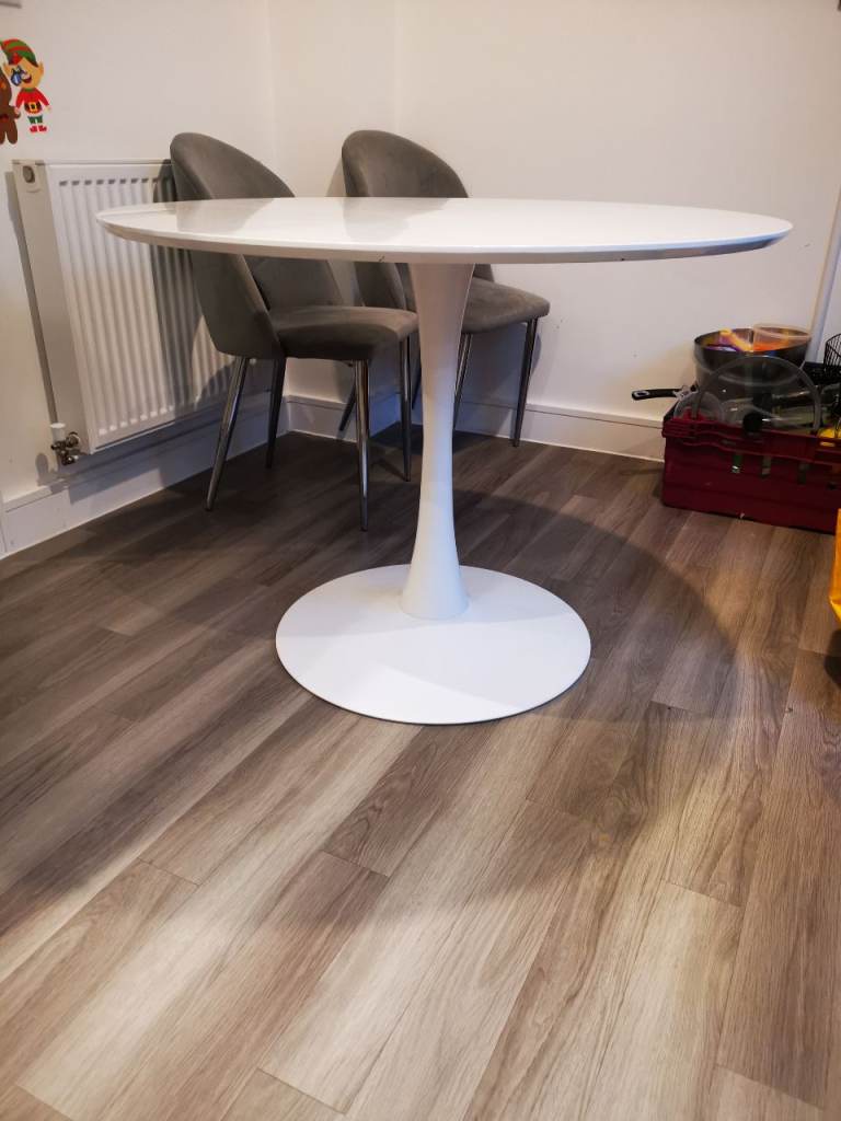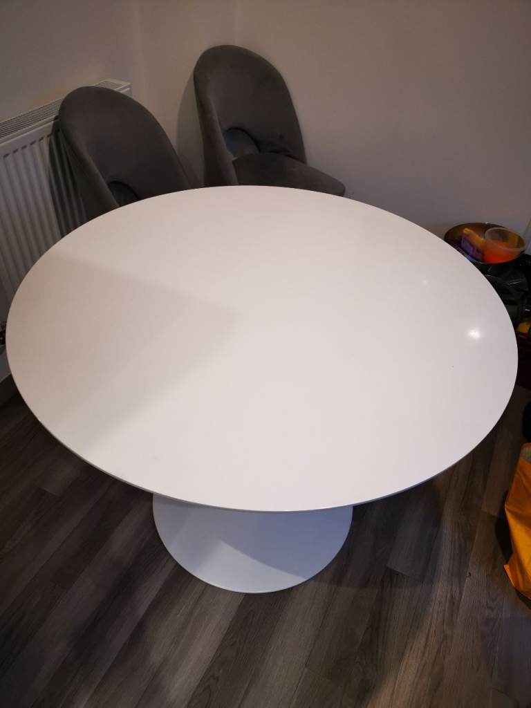 Dining table round white gloss