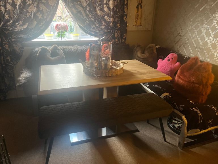 Posting for 1+ yearsDINING TABLE (solid wood/chrome base)