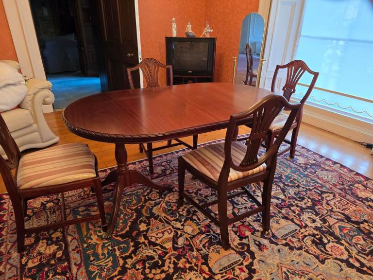 Antique style dining table and 4 chairs, can be opened out to extended size. New condition, unused. Stored in spare room, pick up only.