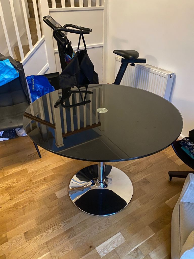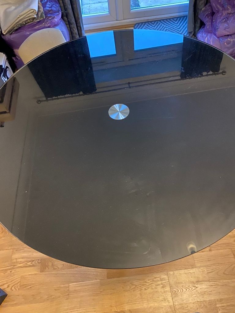 Black glass dining table in good condition. Room for 4 chairs