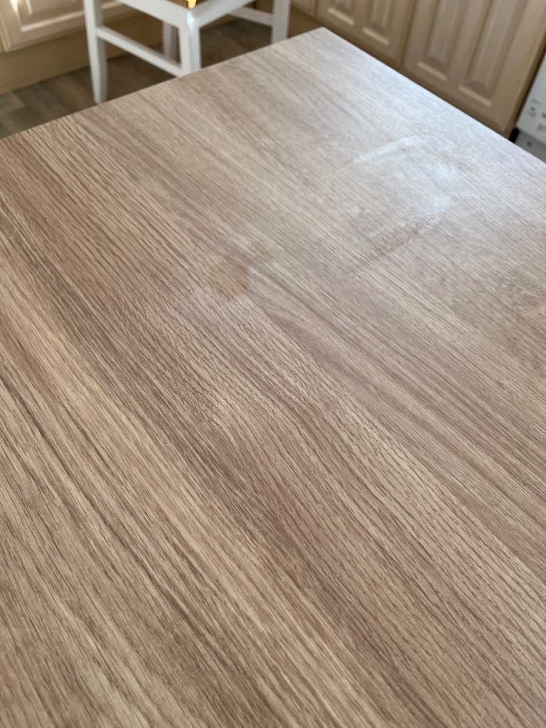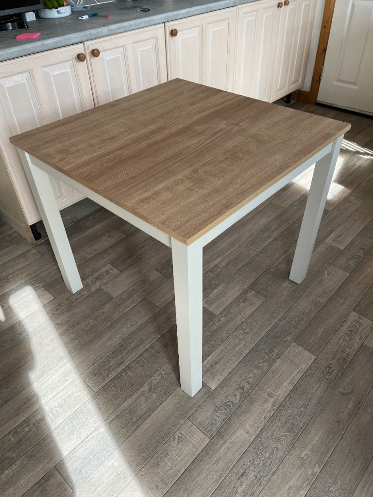 Square Dining Table, in used but good condition. 4 Legs easily remove for transportation. Slight blemish on top, but hardly noticeable in daily use. Dimensions 80 x 80 x 71cm (31.5 x 31.5 x 28 inch) W, D, H. Buyer collects Berwick. May be able to deliver locally.