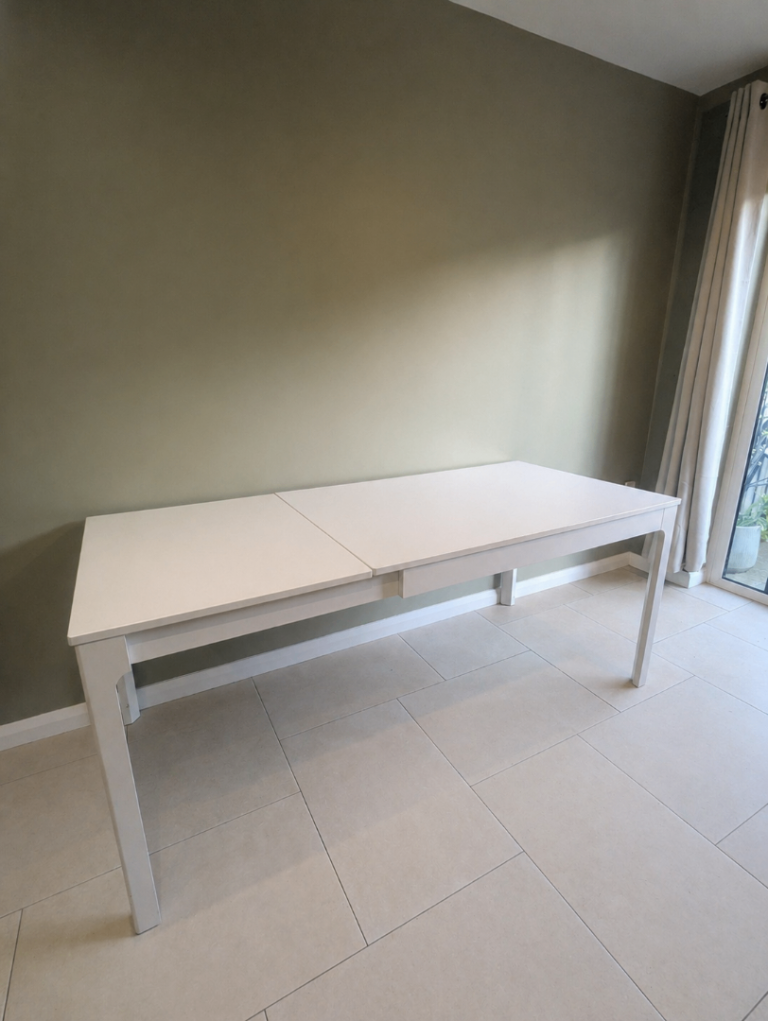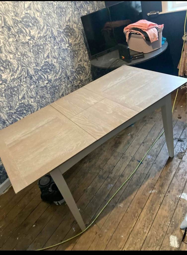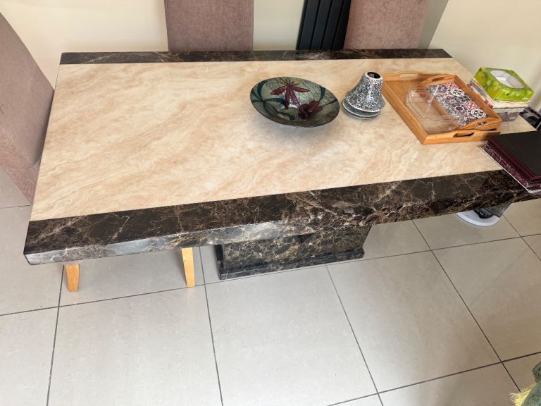 Beautiful cream and brown dining table in very good condition. Sits up to 8 people.