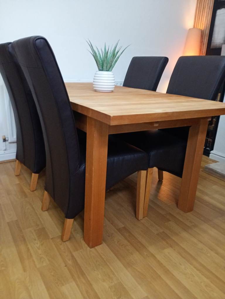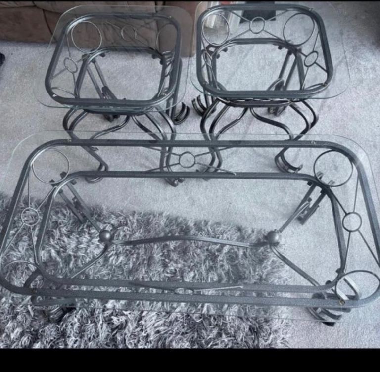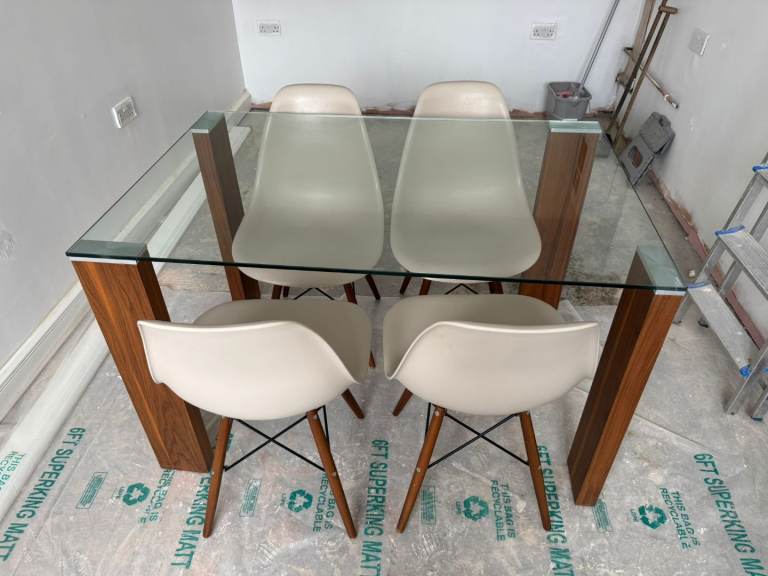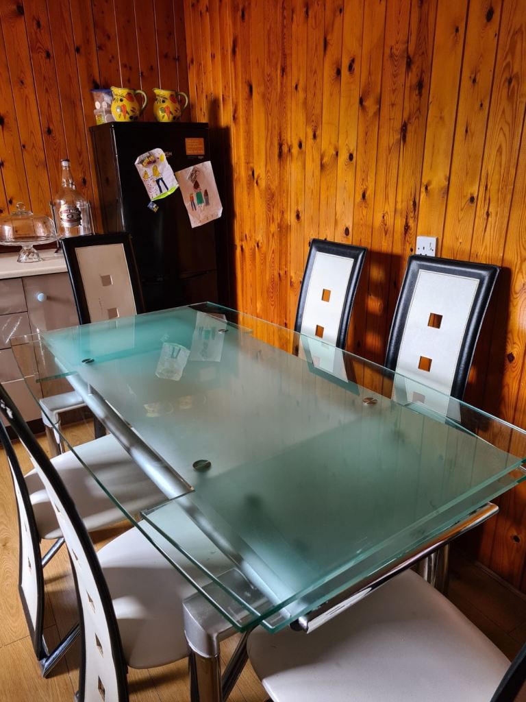 The dinning table & chairs in very good condition no scratches on the glass table size is H×75cm W×80cm L×12cm