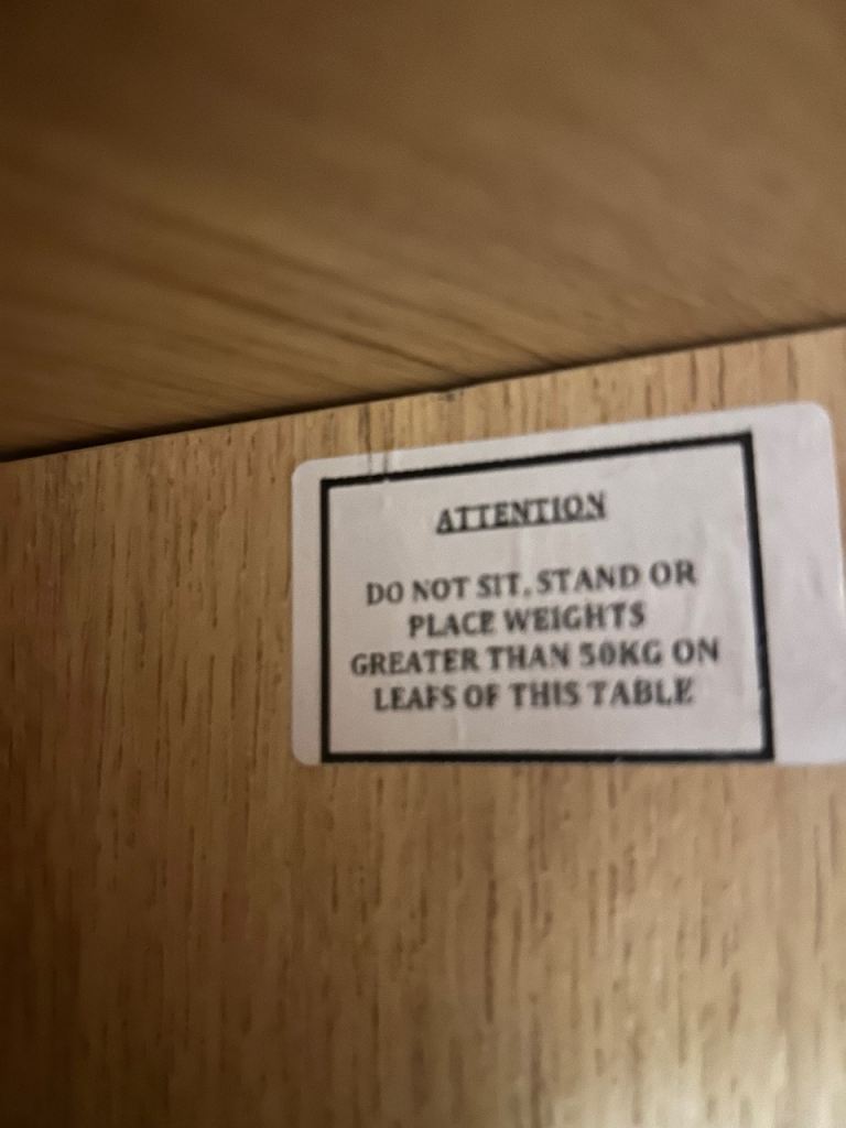 If you have limited space but occasionally need a table big enough to eat at with family/friends then this is the solution. 6ft approx when fully extended. 12ins approx leaf down.Sturdy. Would need 2 people to move it.