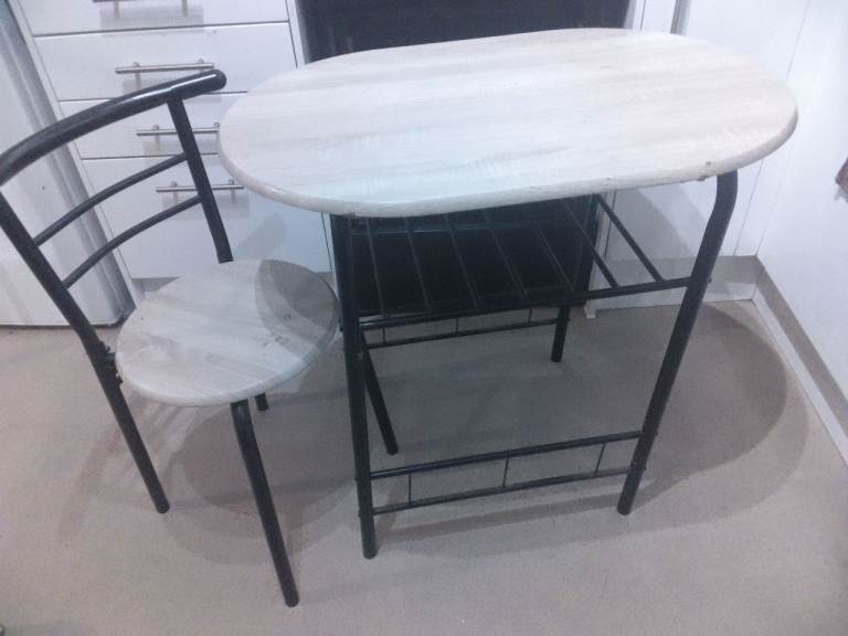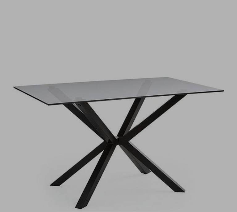 The table is in good condition with minor signs of use, primarily light scratches on the glass surface.