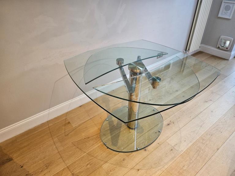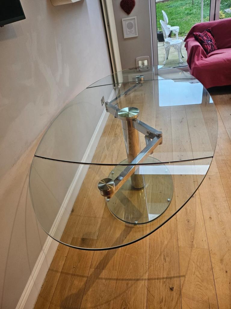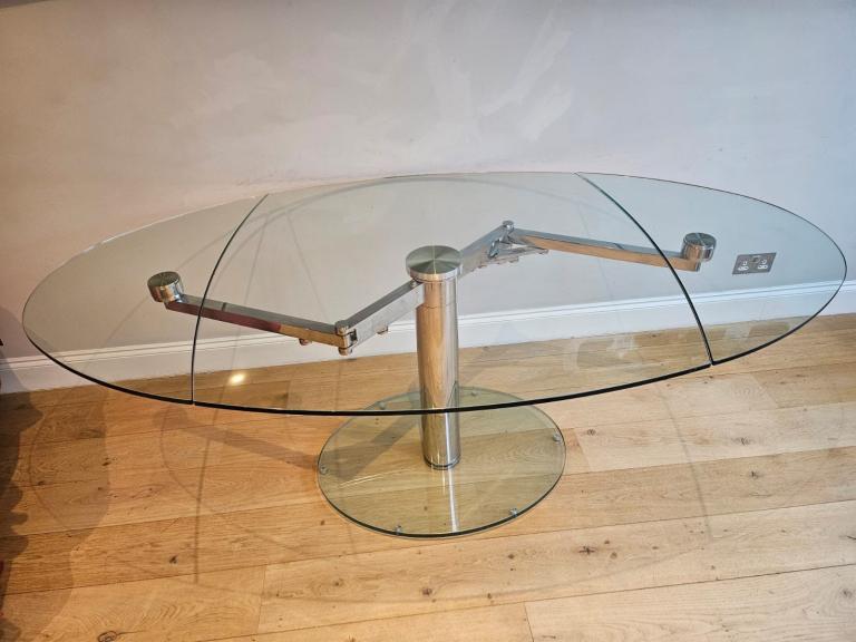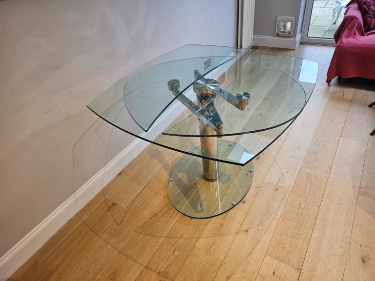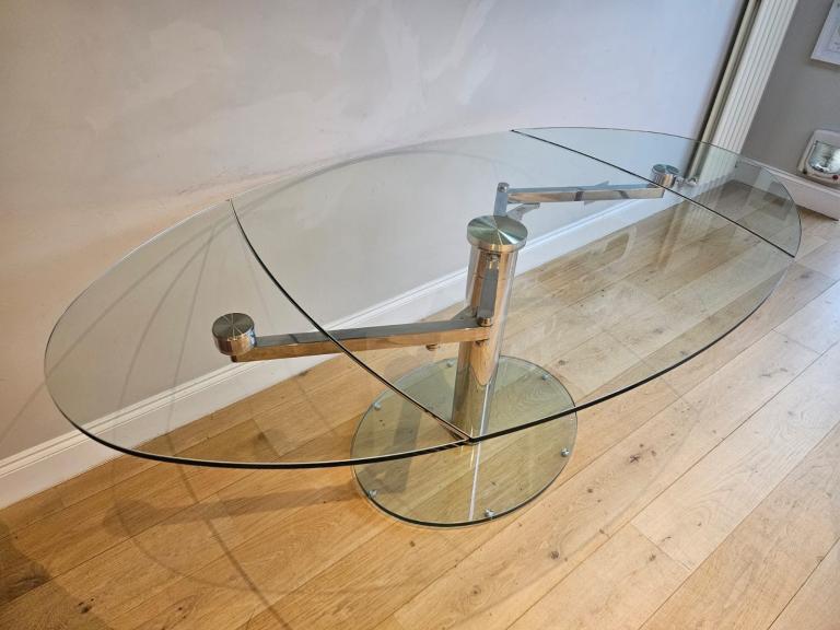 Posting for 10+ yearsDwell lovely glass oval dining table extending