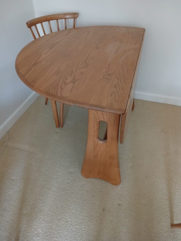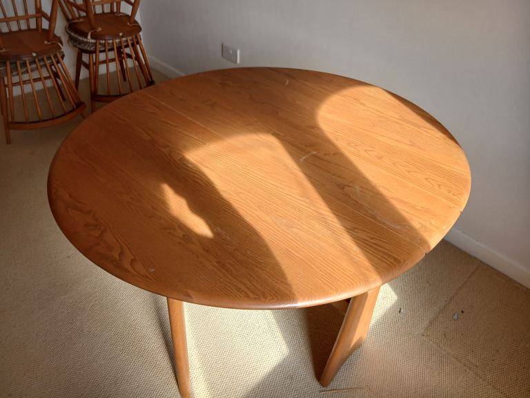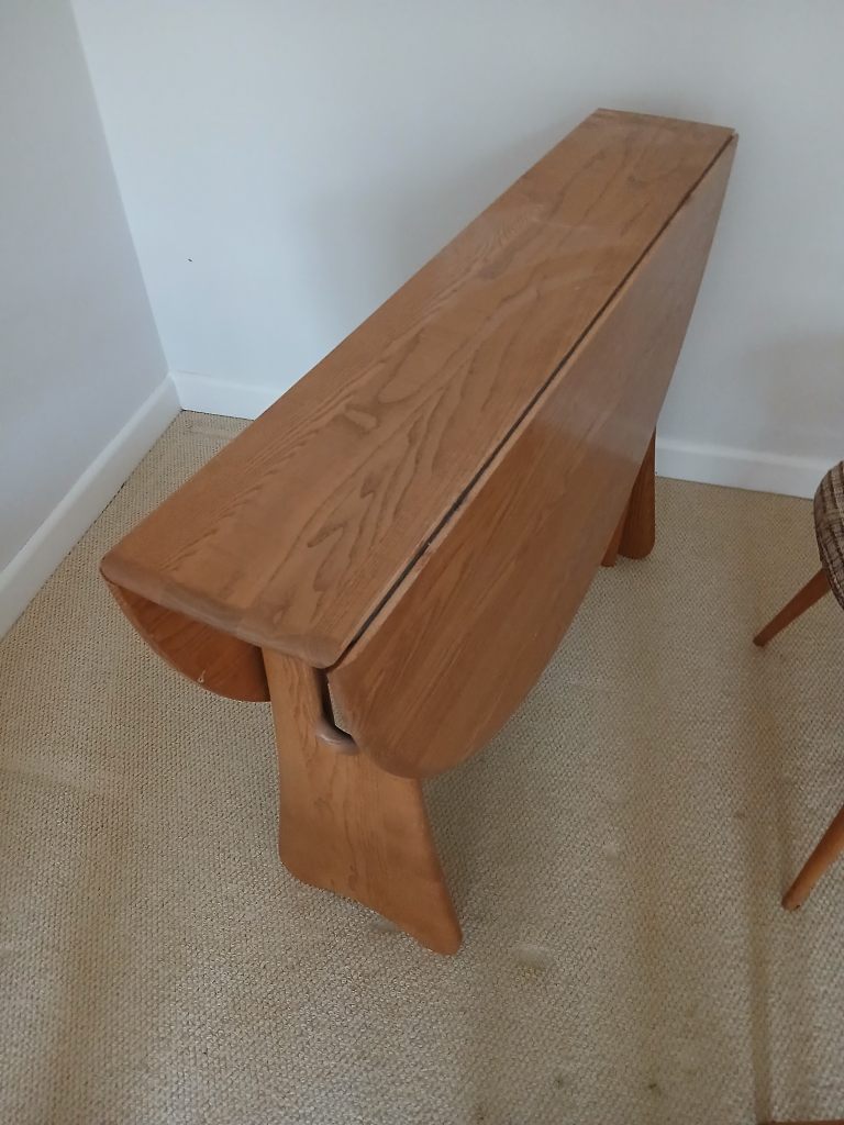Genuine Ercol oval dining table, see photos for dimensions....both sides drop separately, some very light scratches on top, see photos, priced accordingly.