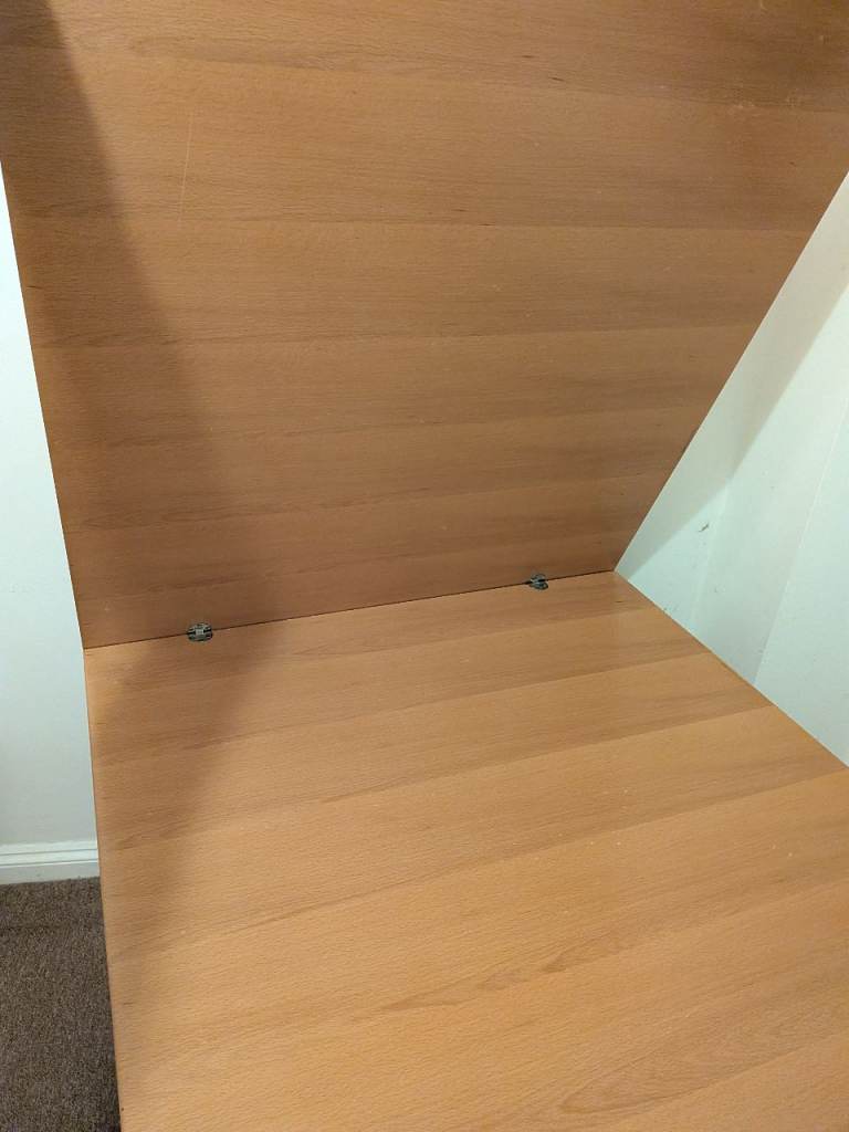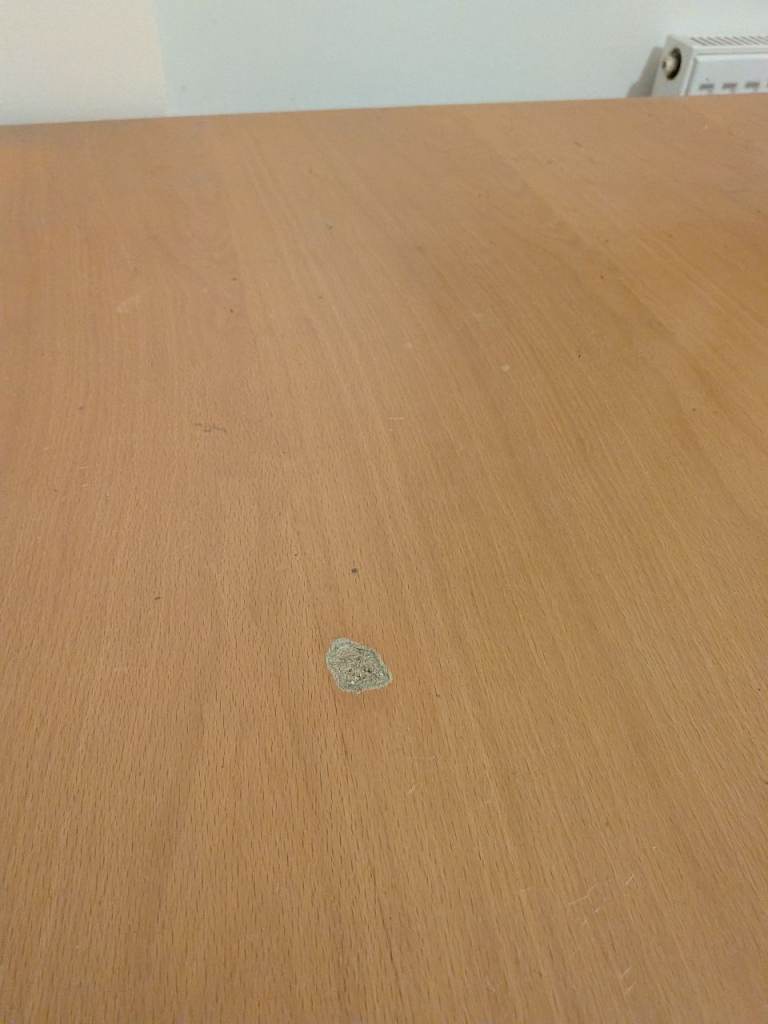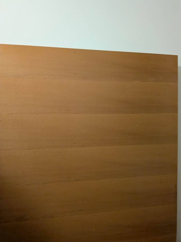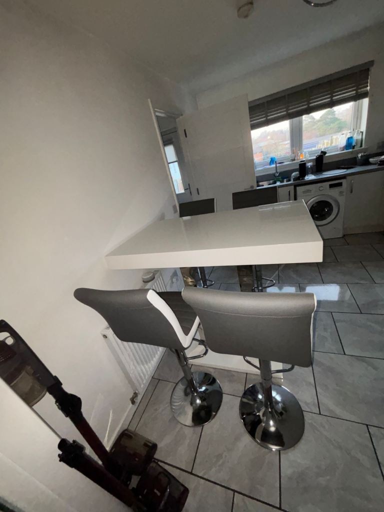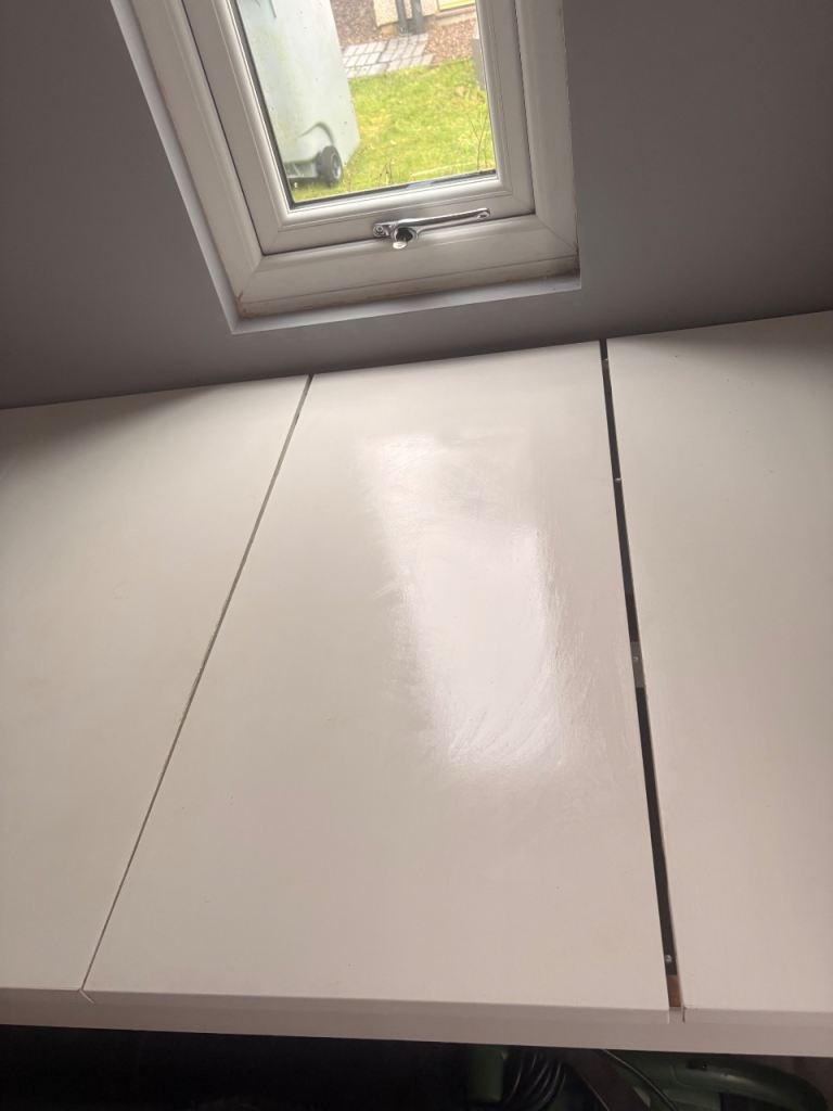 Square table 90x90cm. Expands to a 6 person table by flipping the top down as it slides. we've used it as a desk so some wear on one side and a chunk out of it, but the unfolded inside is perfect condition. Sturdy but can be dismantled into a hatchback as legs come off.