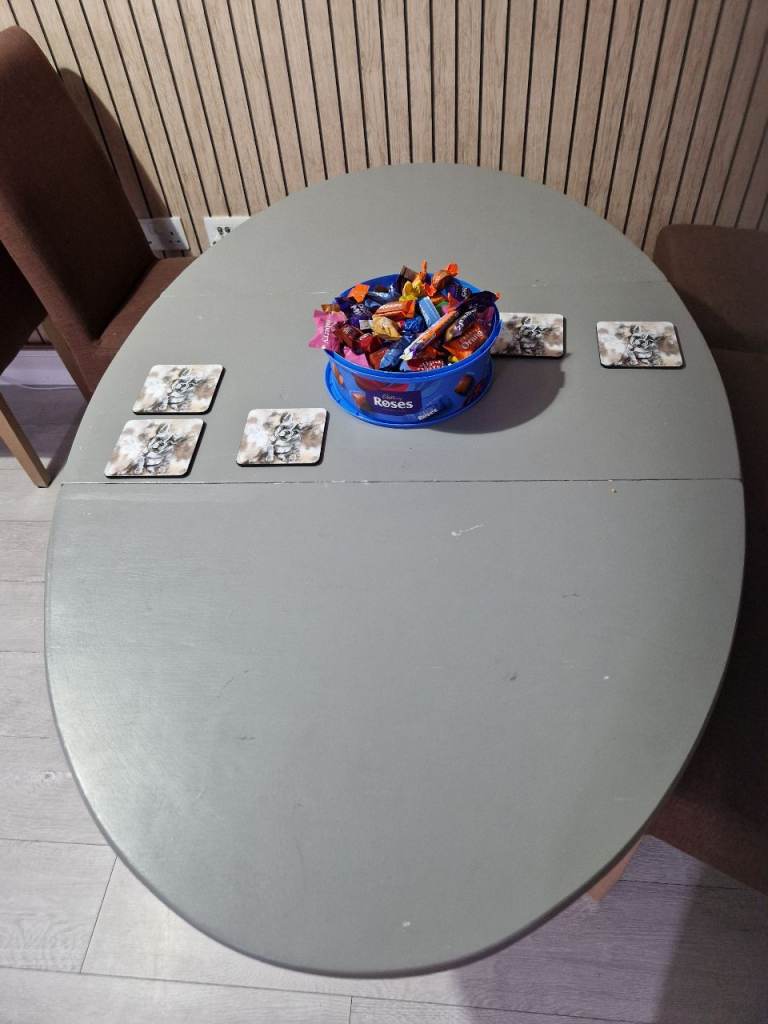 Flexible, can be circular (seats 6), or extended with one or two leaves (seats 14)