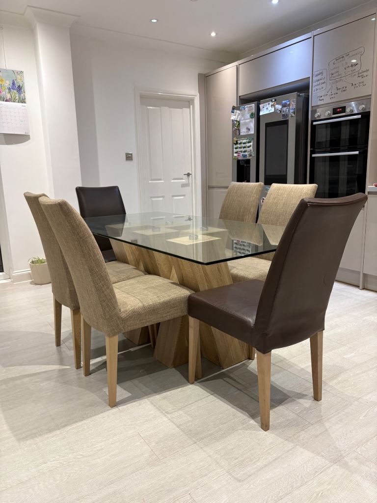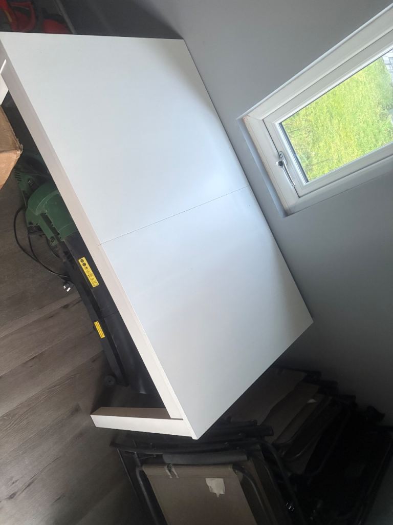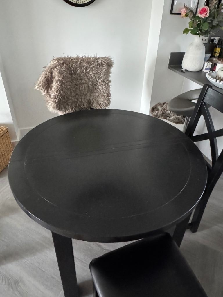 Dining table, round, can be extended with 4 chairs
