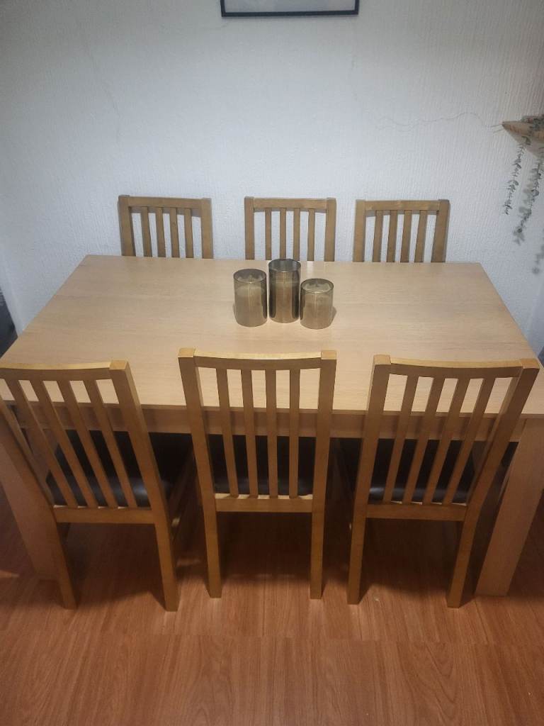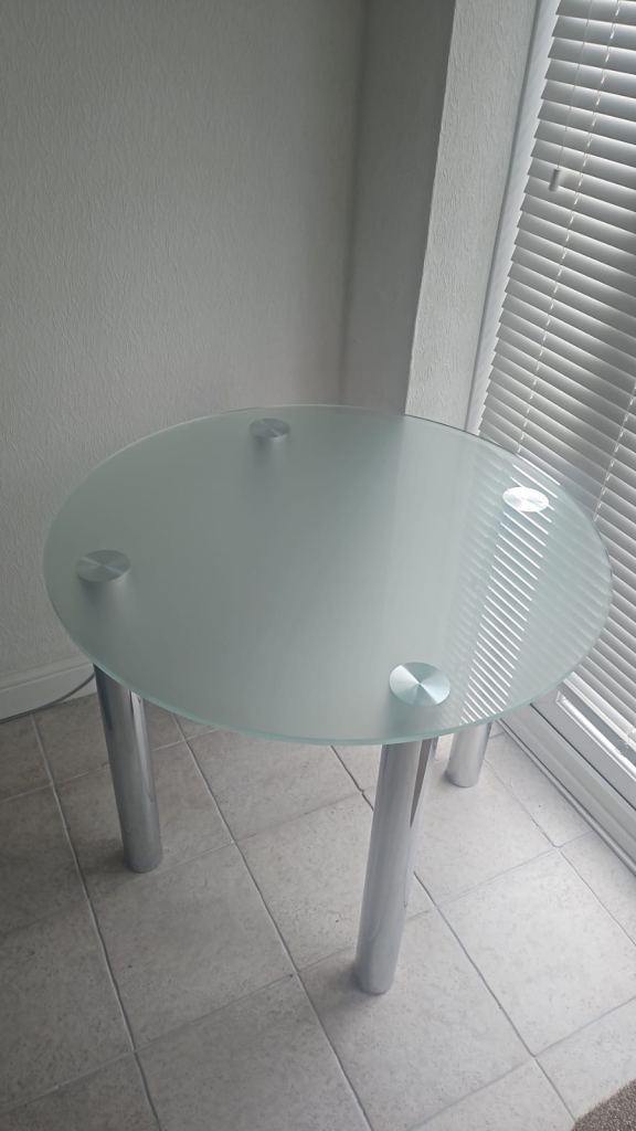 Extendable quality wooden table. Not need and as to go. Dismantled but all parts available with 3 chairs