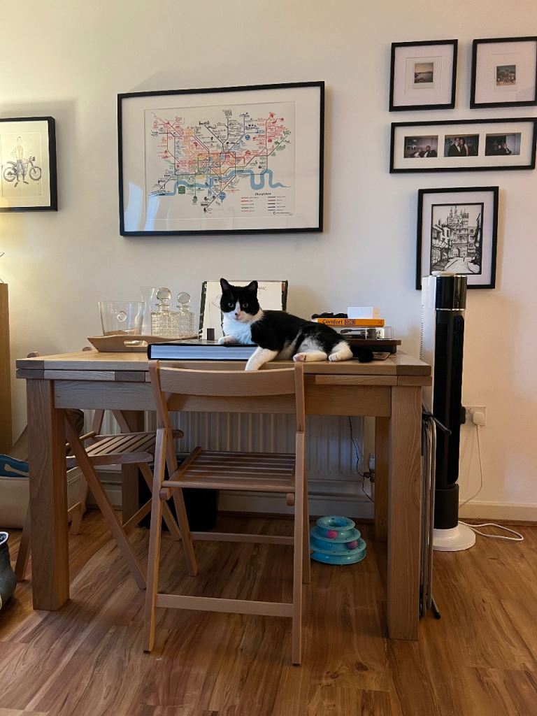 The table is currently disassembled and in storage, easy to put back together, legs just need to be screwed back on. Ready to be transported.