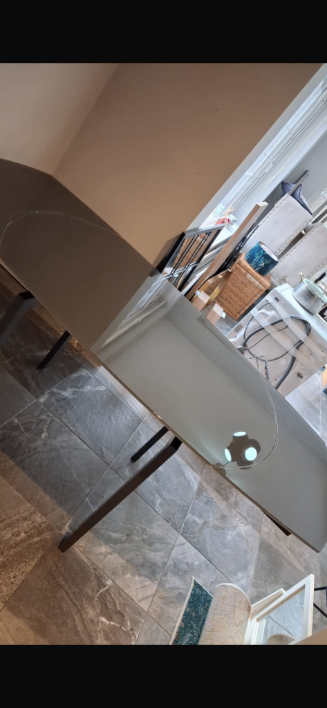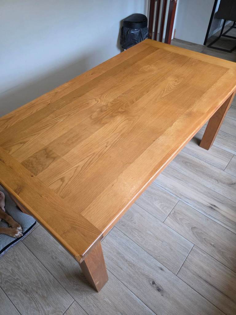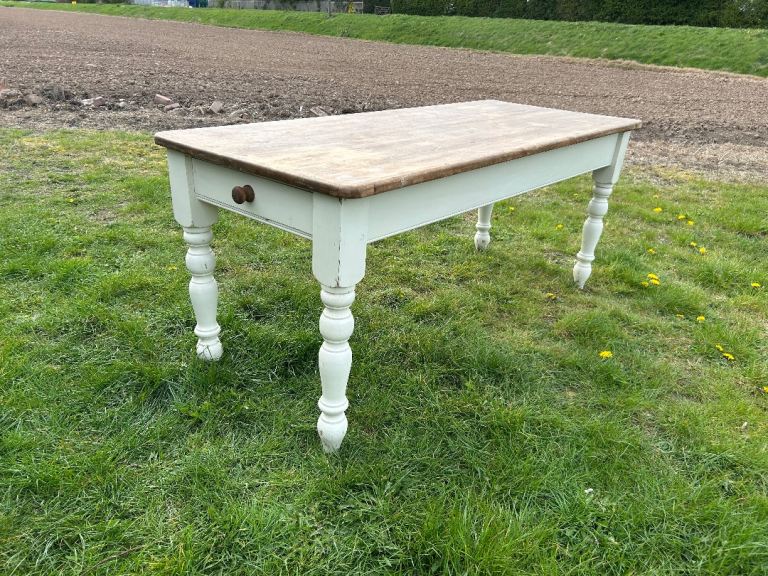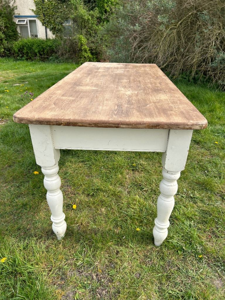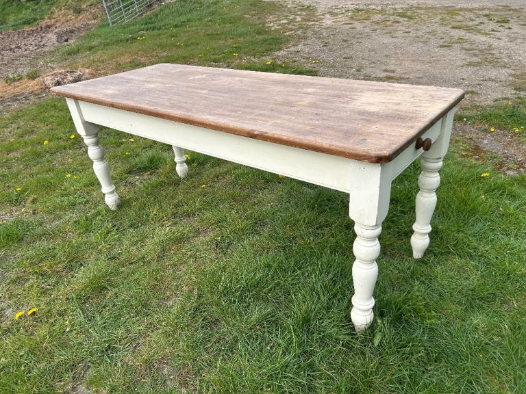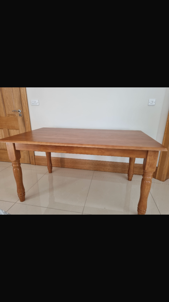 Lovely solid wood dining table in a farmhouse style, perfect for a kitchen or dining room.