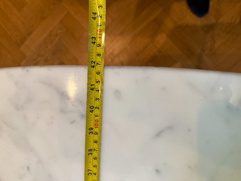 Very heavy – the marble top lifts off the base but you'll need two people and a van for collection.