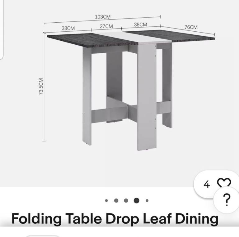 Folding Table Drop Leaf Dining Grey & White