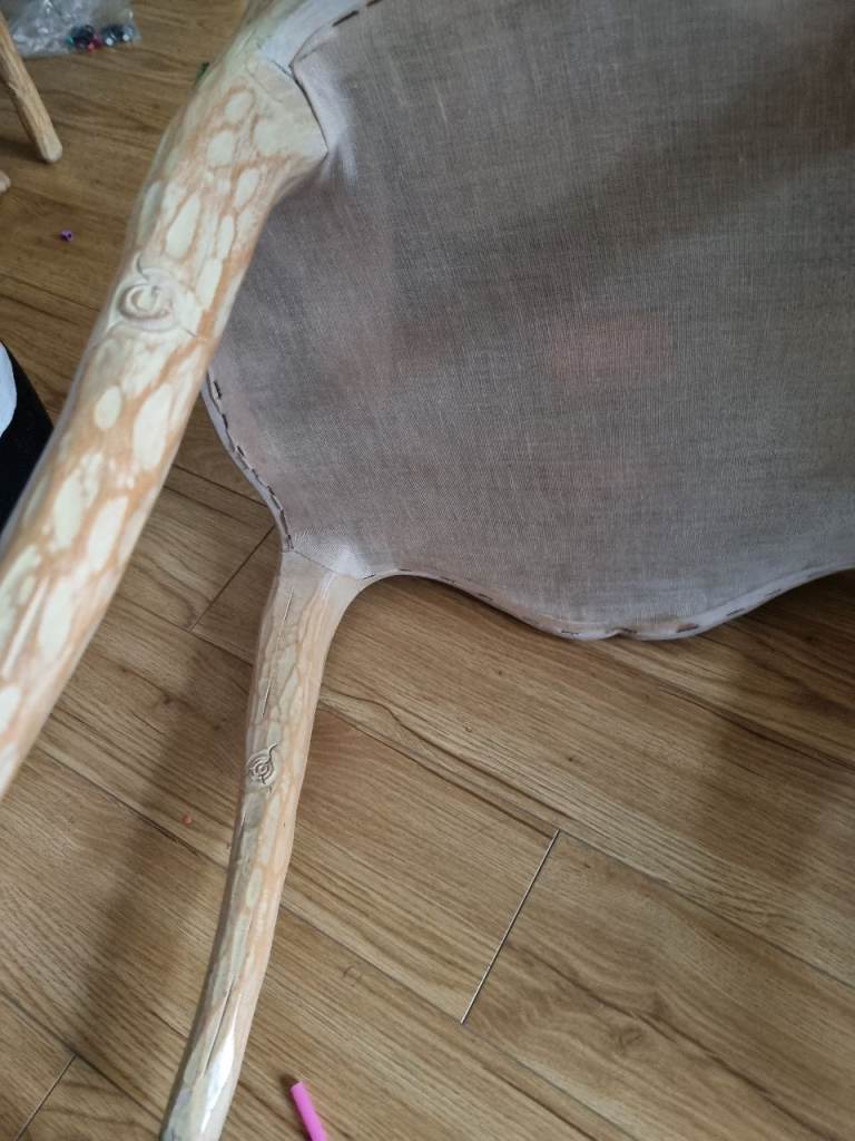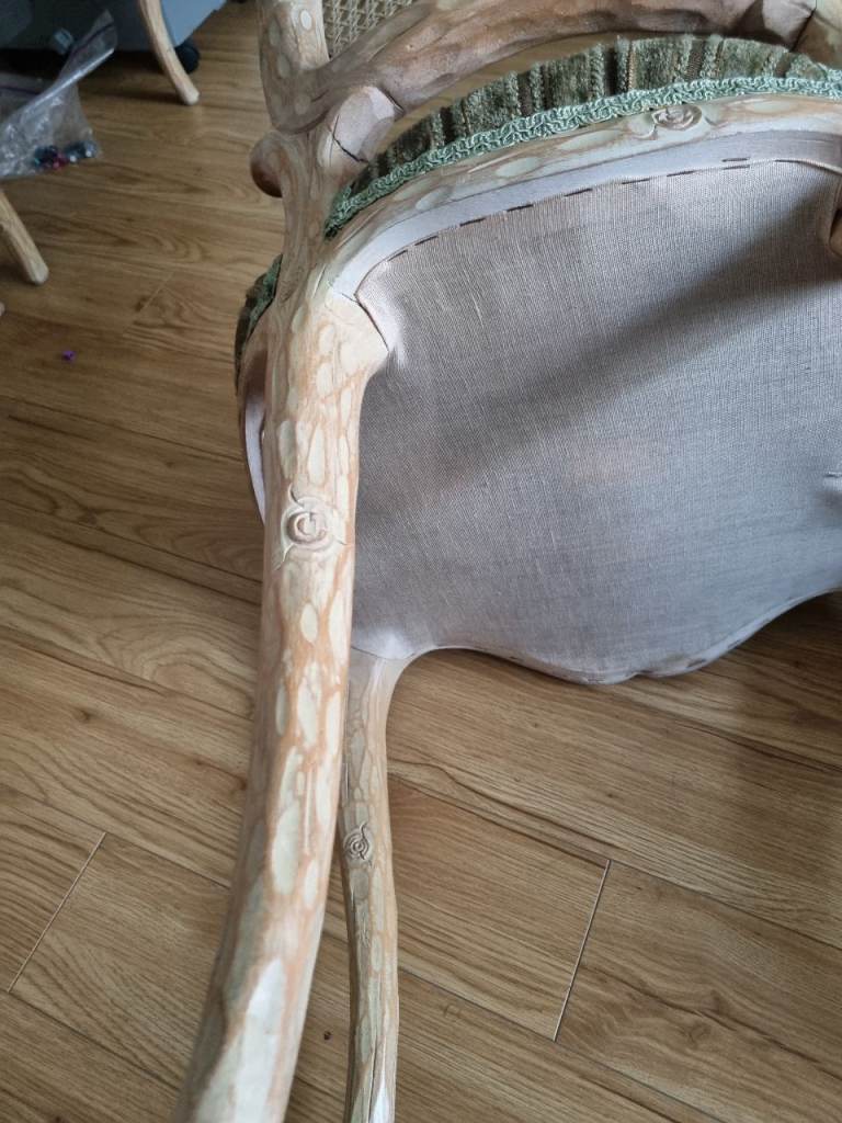 Four chairs for sale, The seat is light green, and the rest is wood with a creamy tint.