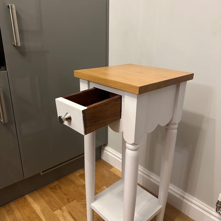 Painting free standing table with oak top and small opening draw 300mm x 300mm x 800mm high, collection only