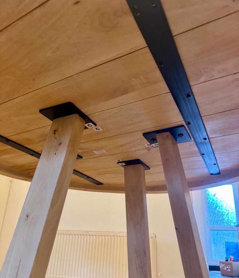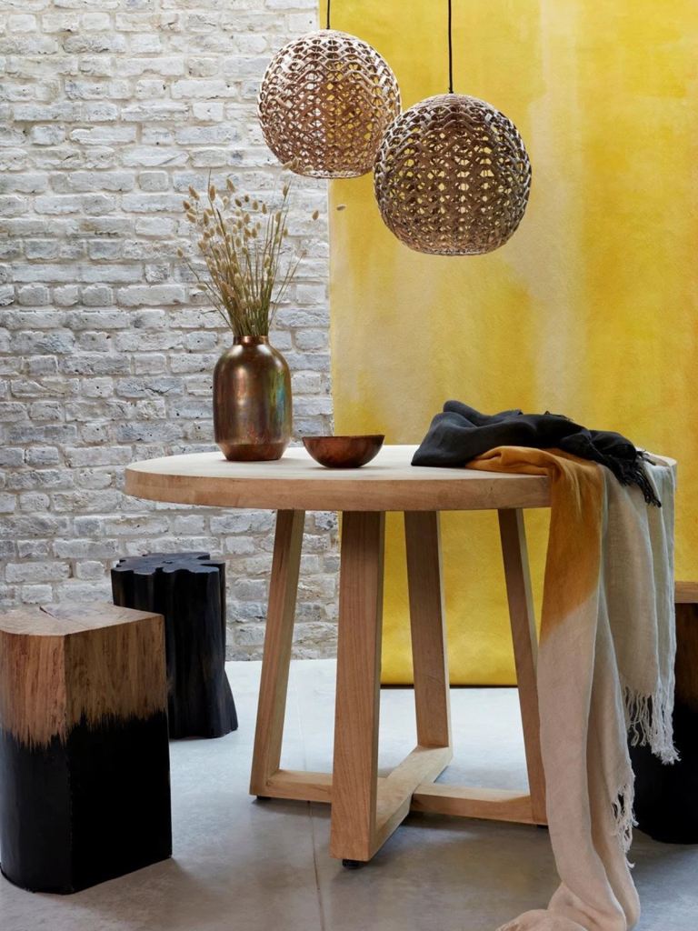The Blonde Wood Round Dining Table is an essential item in any space. Featuring a round table-top, angular wooden legs, and markings from the wood’s natural texture, the table combines modern shapes and organic natural pattern, creating a piece that’s at home in contemporary spaces and modern interiors alike. Add recycled glassware and shoreline crockery for the perfect eclectic table setting. Our blonde hue is created through the use of a spray solution, which reacts with natural light to sun-bleach the wood, providing a warm, rustic finish. Wooden table Round table top Blonde wood Height : 76cm Width : 120cm Depth : 120cm Please note: We don’t disguise our wood’s natural grain and colour, instead letting the knots, lines, and organic markings come through. This can create a unique finish with subtle tones ranging from golden amber to ashy beige.