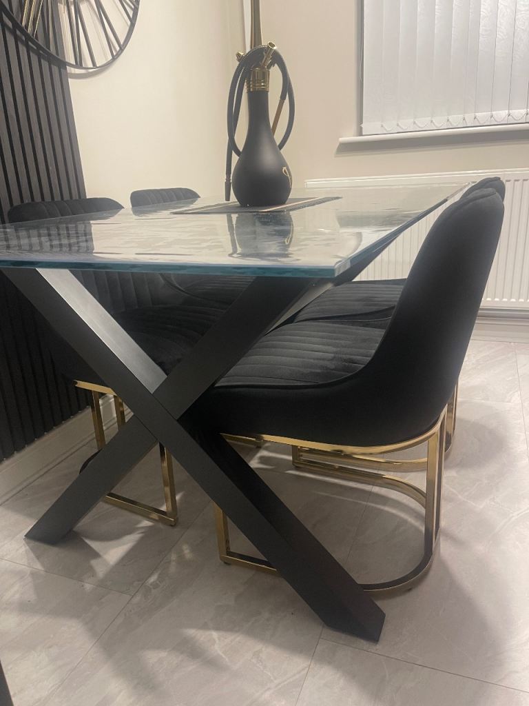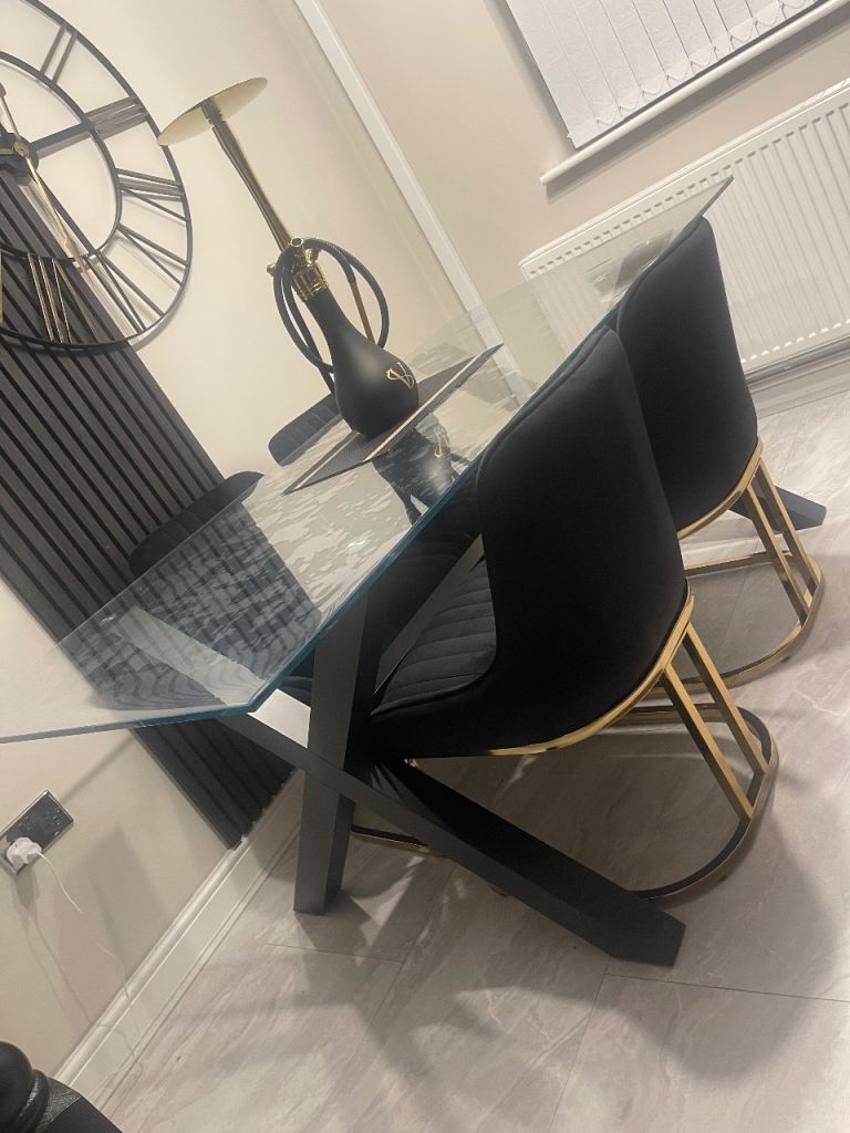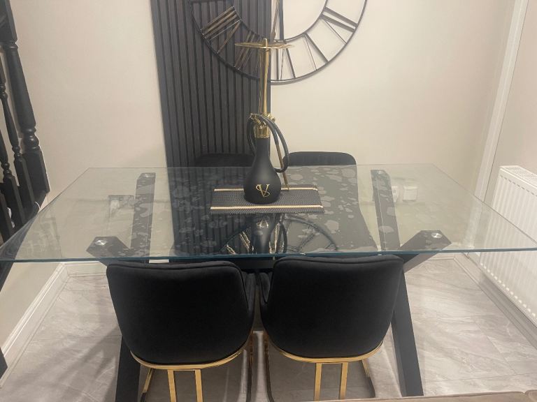 Hi I’m selling my 6 seater dining table it’s in a really good condition as hardly used and always been covered with a table topper as can see on the pictures the bubbles is a seethrough topper and not any damage to the glass. I purchased and set it up but it’s too big for my room and that’s the only reason I’m selling it, the chairs are not included. I paid £500 and selling for £290 ONO Dimentions H75 x W90 x D180 cm.