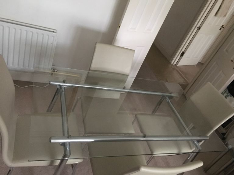 Glass dining table, can seat 4 to 6 people.