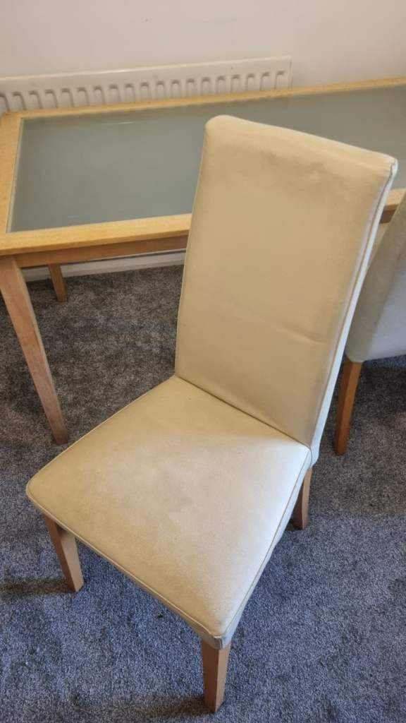 Comes with x4 cairs upholstered with real leather