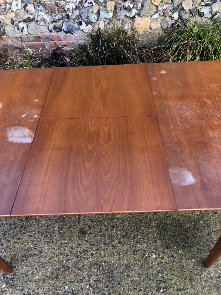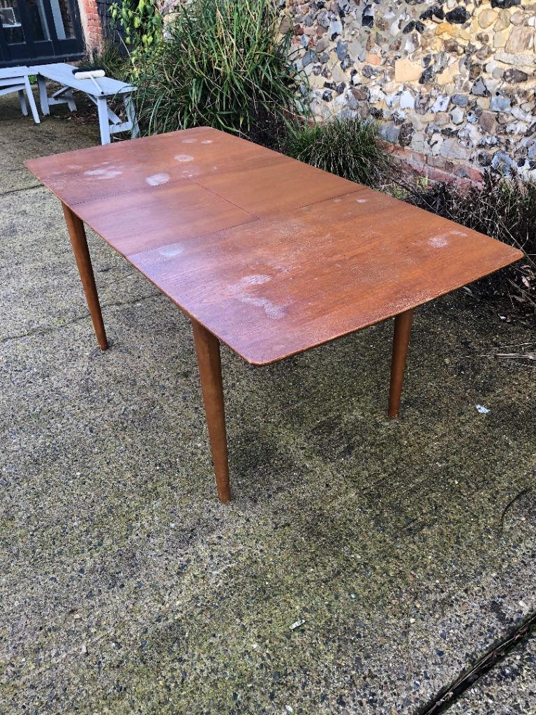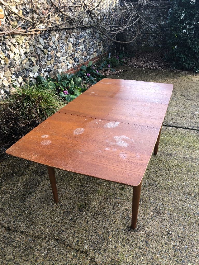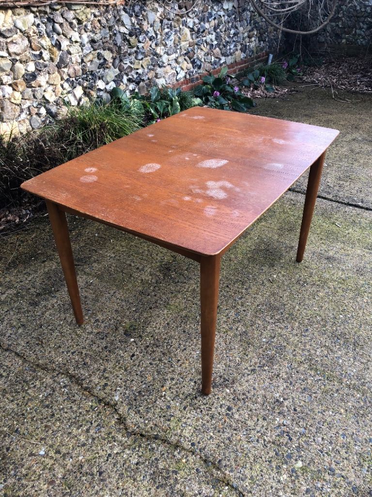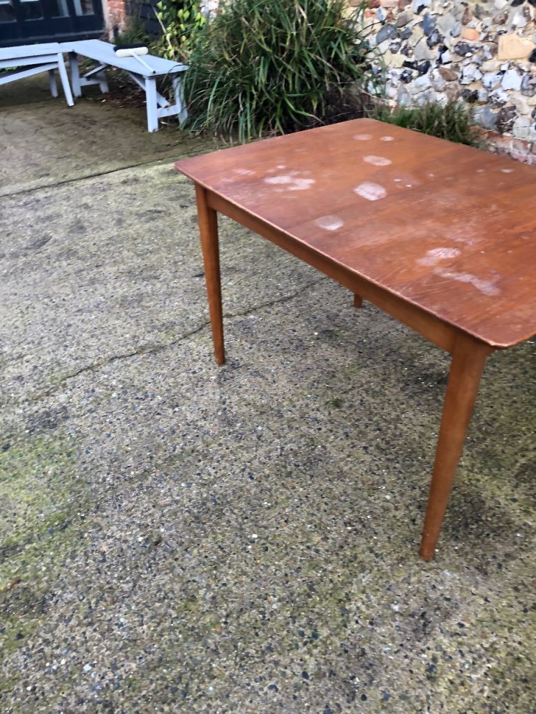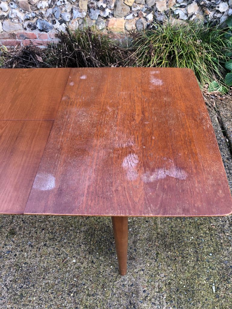 Please note: This table needs cleaning and light sanding to restore wood graining and colour.