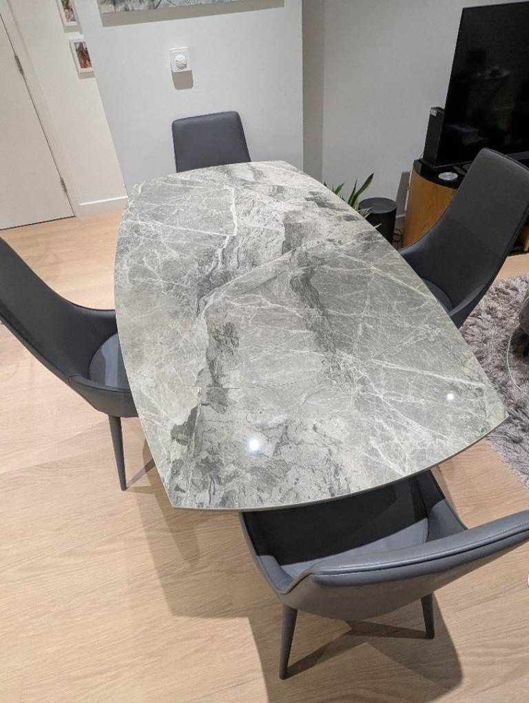 Posting for under a monthDining table and chairs (grey marble extendable 4-6 seater, faux leather chairs) - collection only