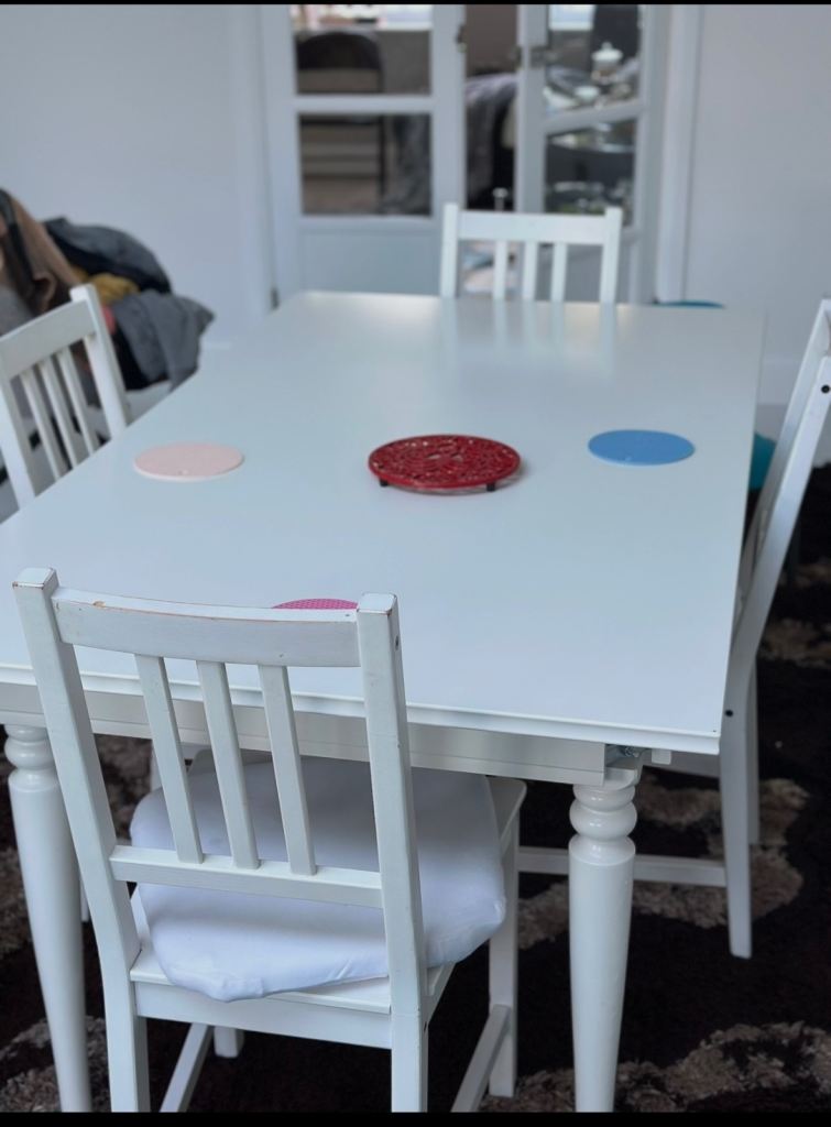 Space saving … 100 cms diameter…. Folds neatly against a wall or in a corner. Lightly used. Sells in alternate colours at Habitat for £280
