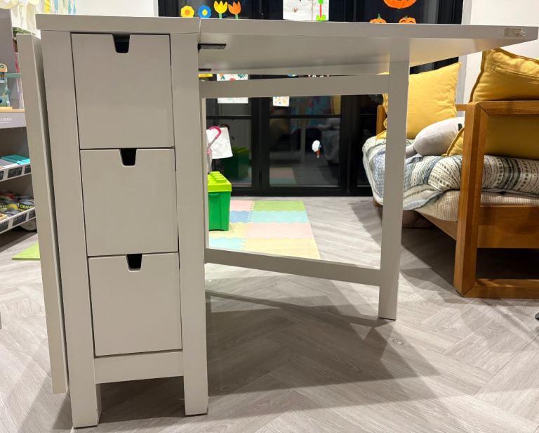 Ikea drop leaf dining table, for a max of 6 people when fully extended. Has 6 handy drawers. Original price £250
