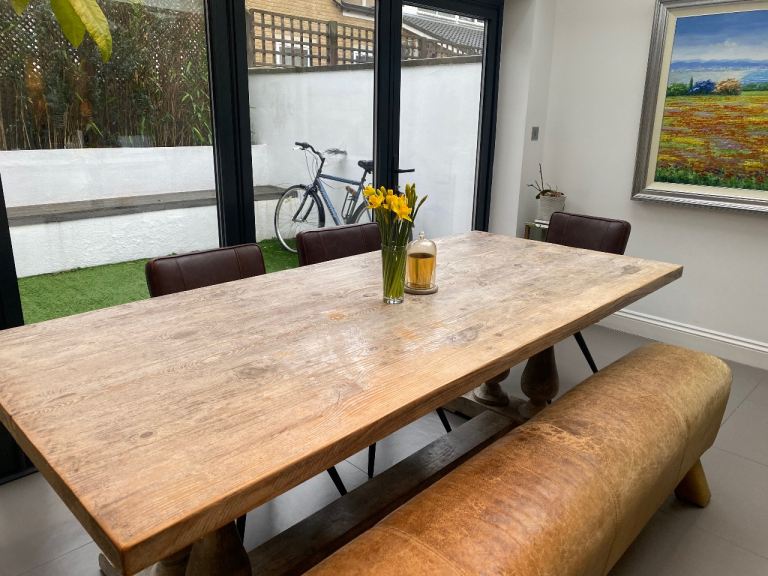 Solid wood extendable table is practical and sturdy. It easily extends when you need extra seating and folds back down neatly when you don’t.
