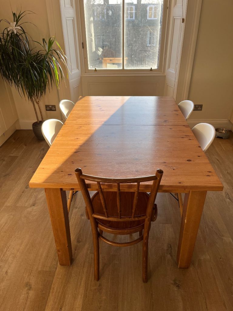 Selling a classic IKEA solid wood dining table in a warm pine finish.