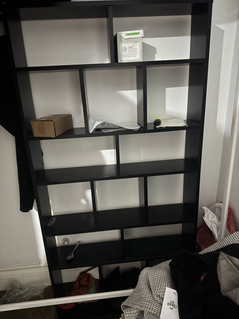 Urgently has to go. White, glossy IKEA dining table, in excellent condition, plus shelving unit for free