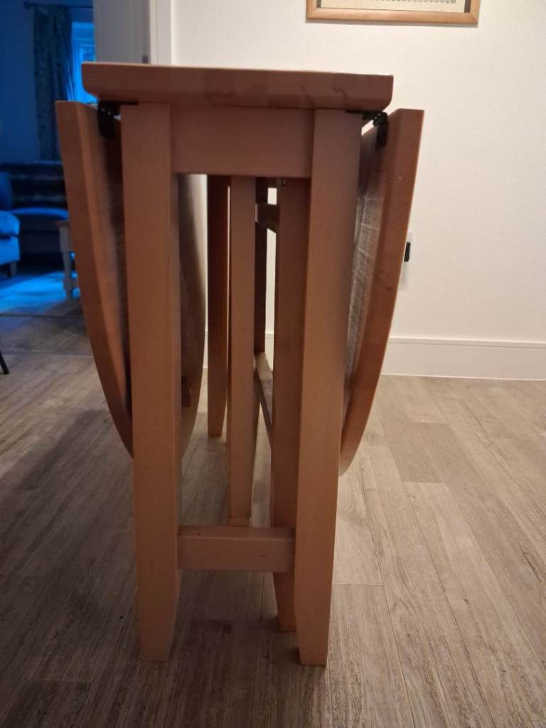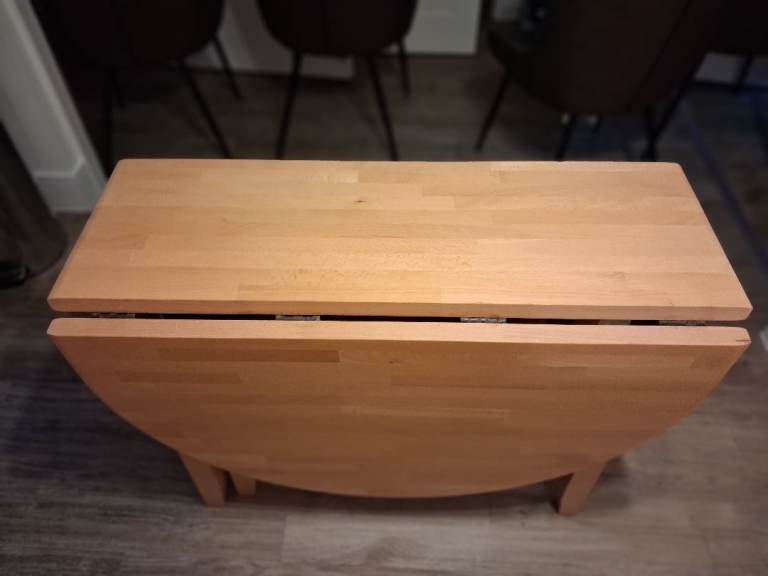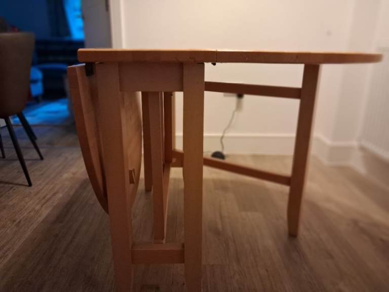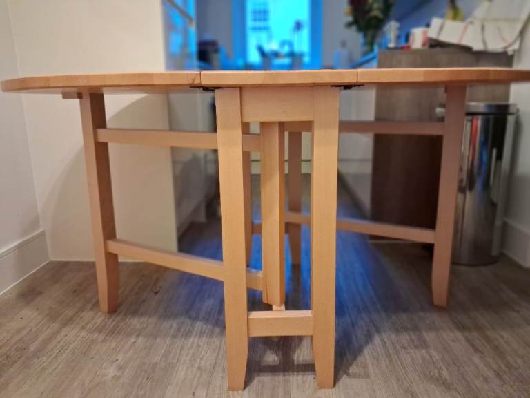 Solid beech dining table, dropleaf, gateleg. Good condition. Full length - 146cm, height - 75cm, width - 92cm.