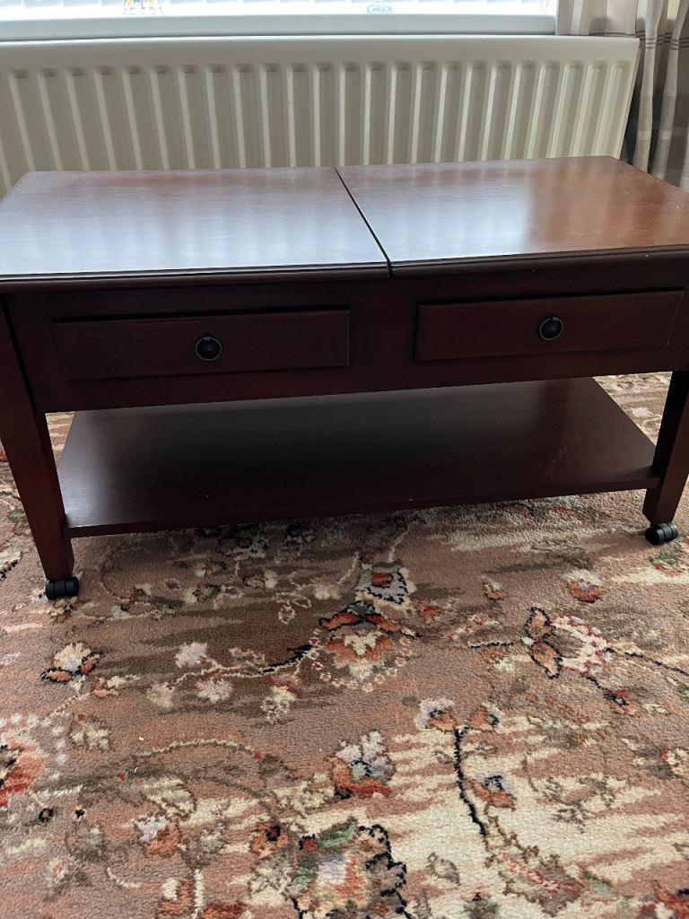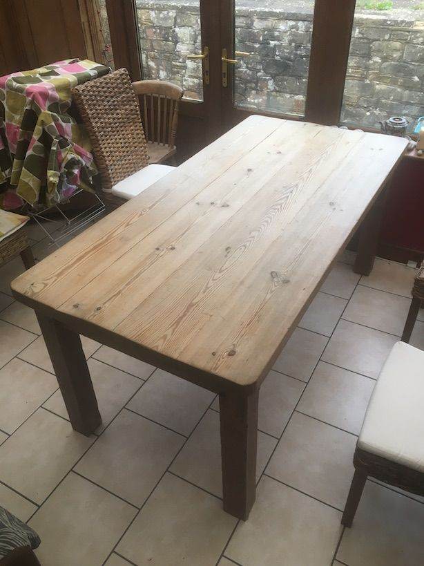 Three legged, solid wood dining table. Some marks from use over the years but very sturdy.