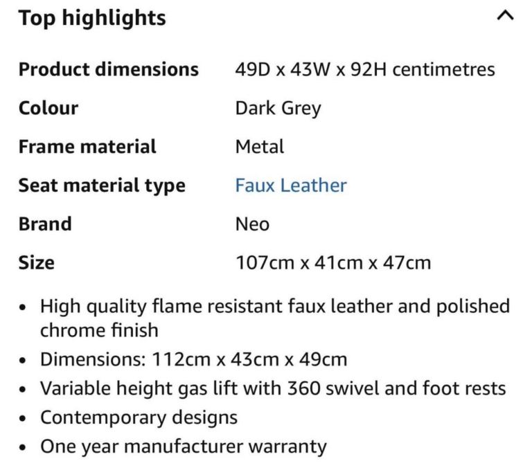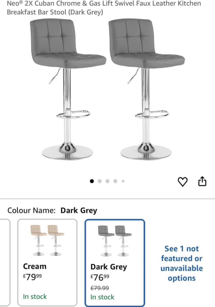 Bar table comes from Next Home, and Bar Stools were purchased from Amazon, over a year ago - see photos for description and RRP.