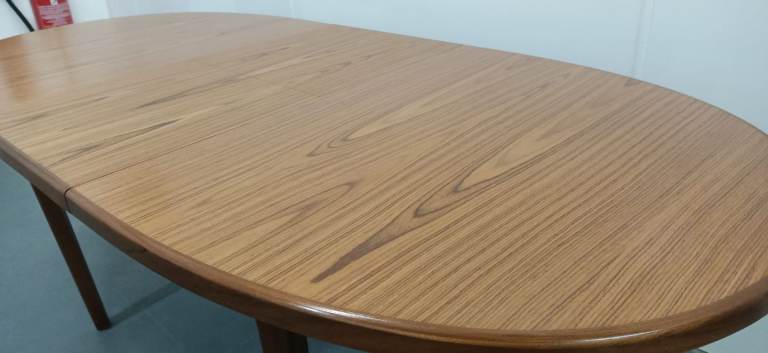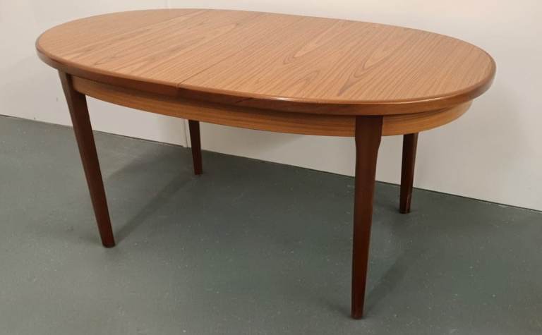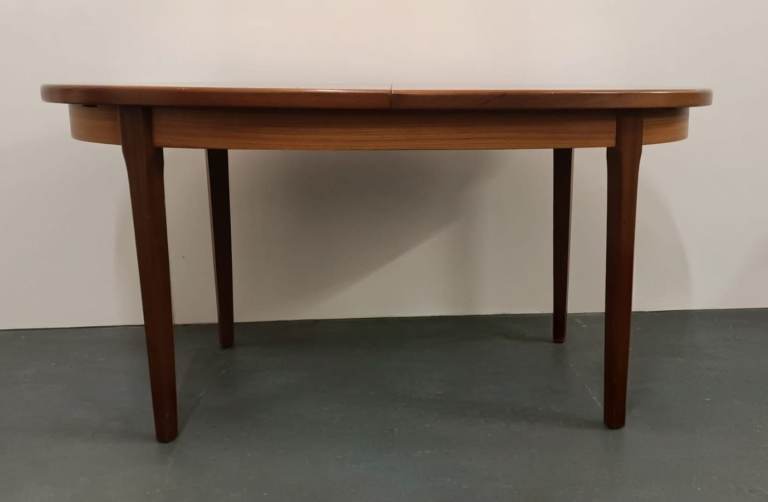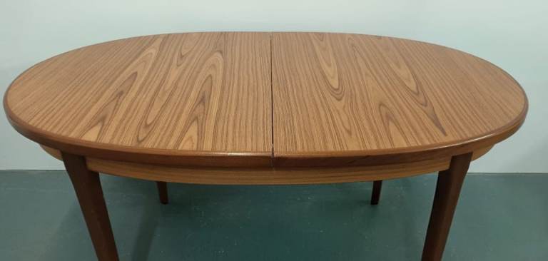 Mid-century extending oval teak dining table. In good sturdy condition with minimal signs of surface wear.