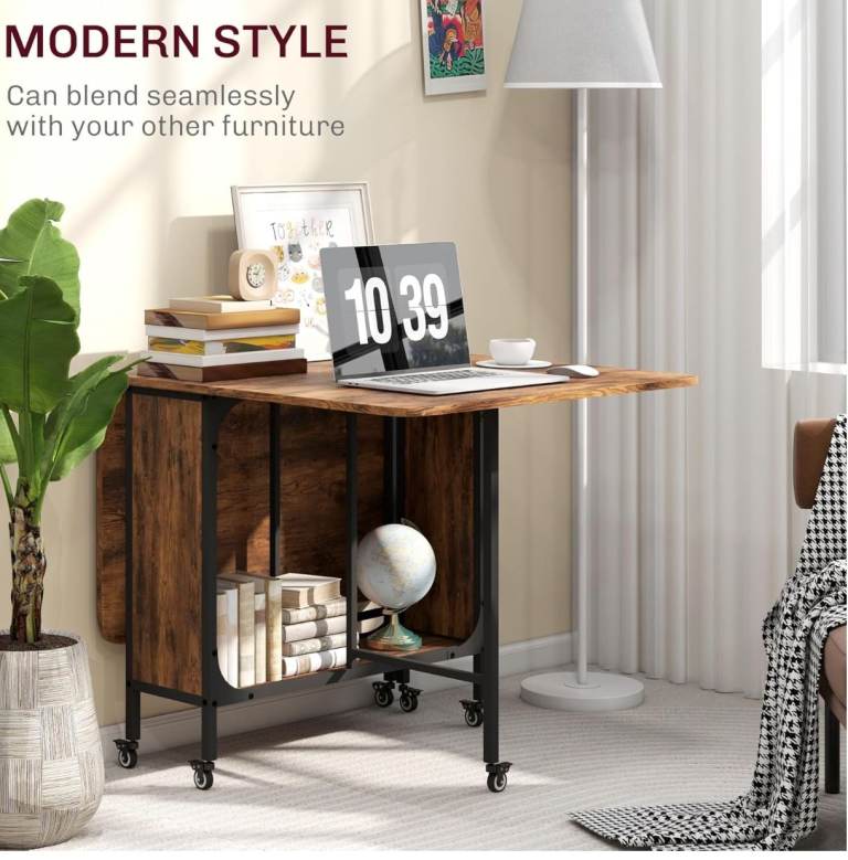 Mobile Drop Leaf Table, Folding Dining Table with 6 Wheels & Storage Shelf for Small Spaces